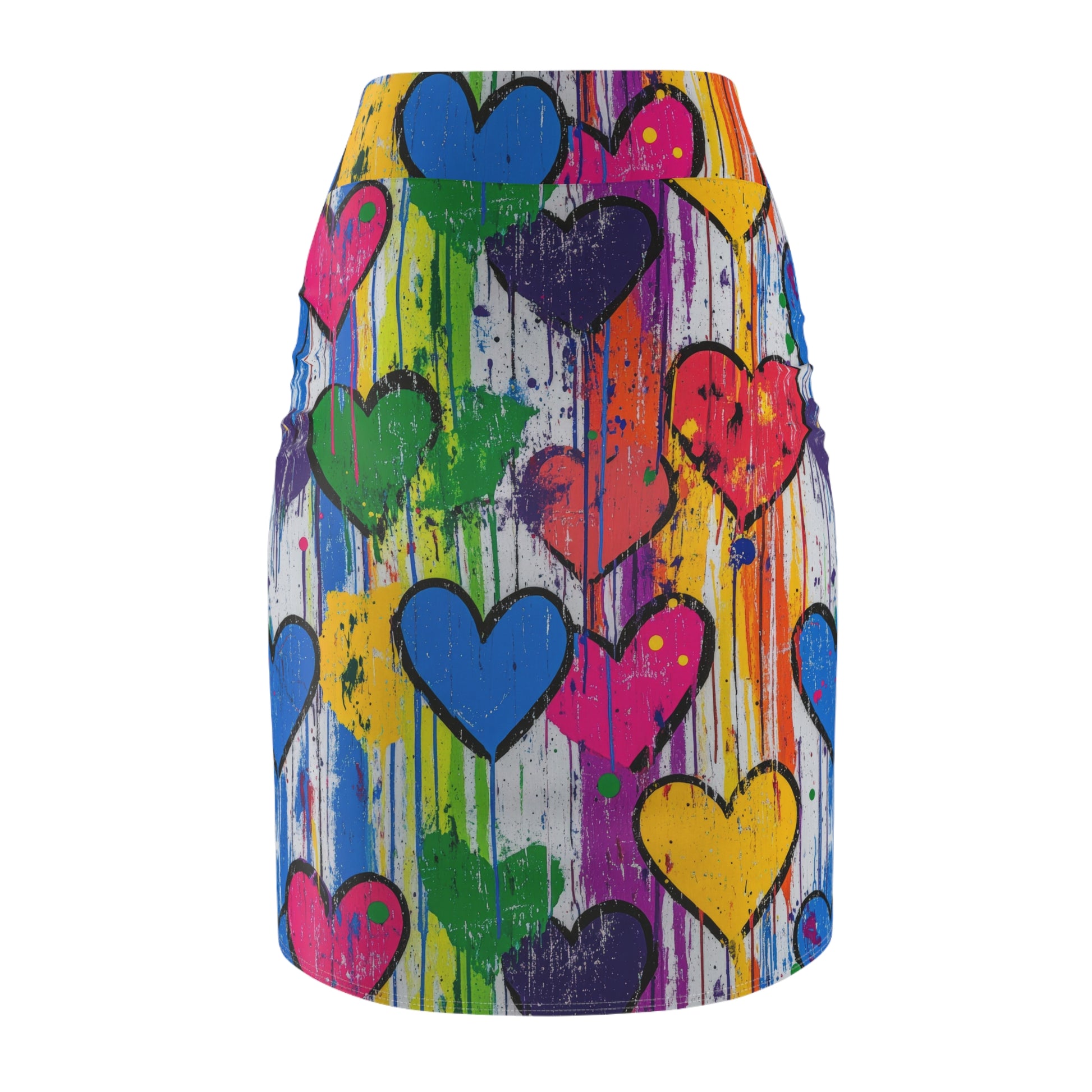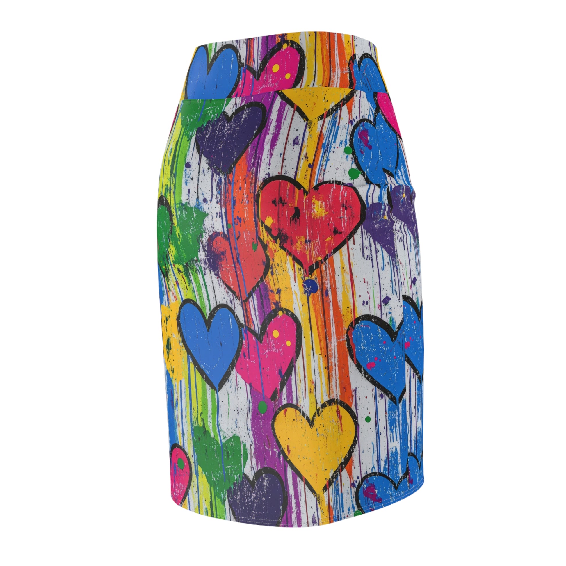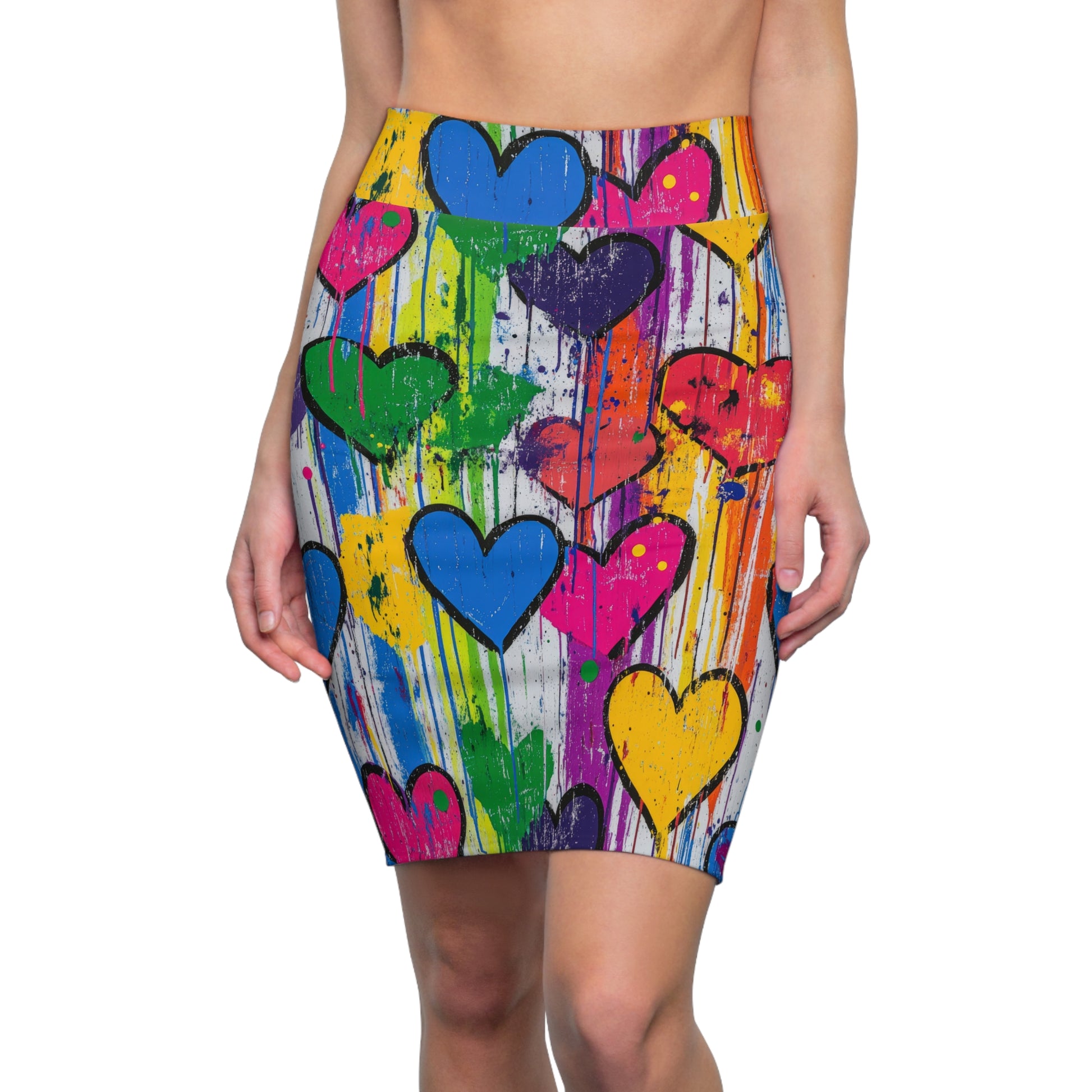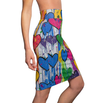 Zeig deine kreative Seite! Hol dir jetzt deinen Graffiti Hearts v5 Bleistiftrock und bringe Freude und Individualität in deinen Look!