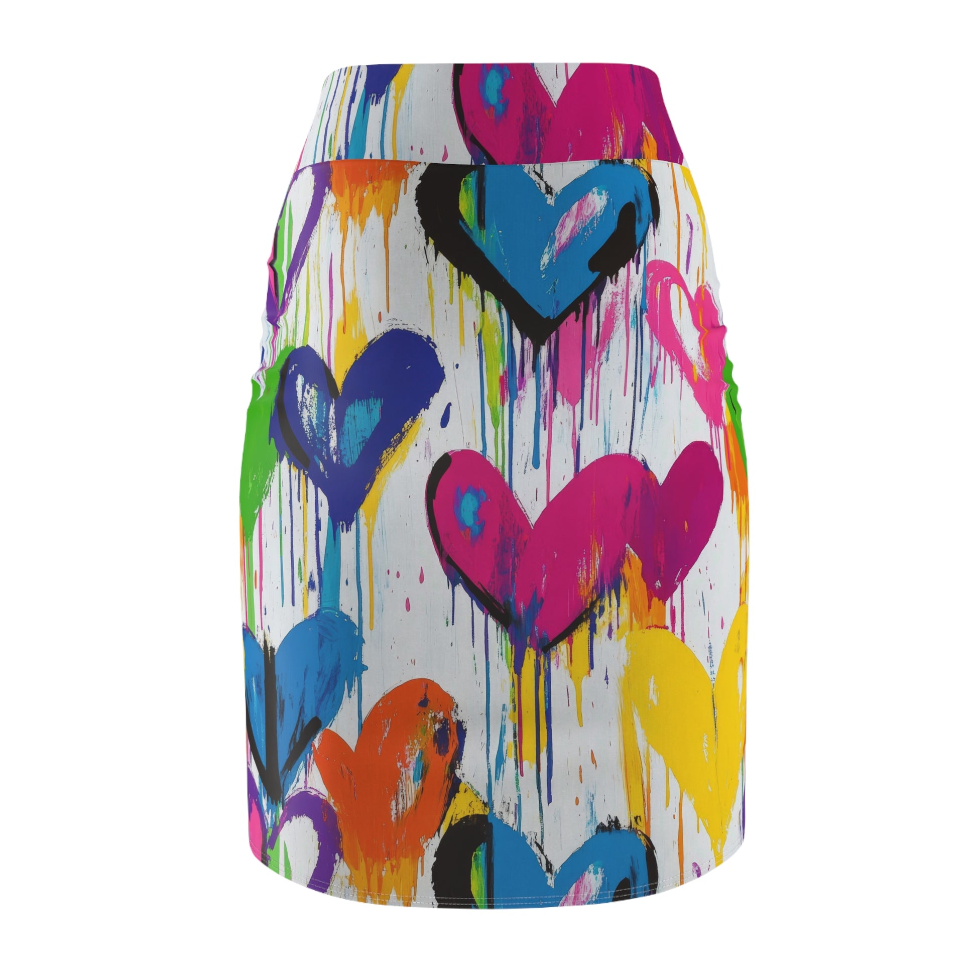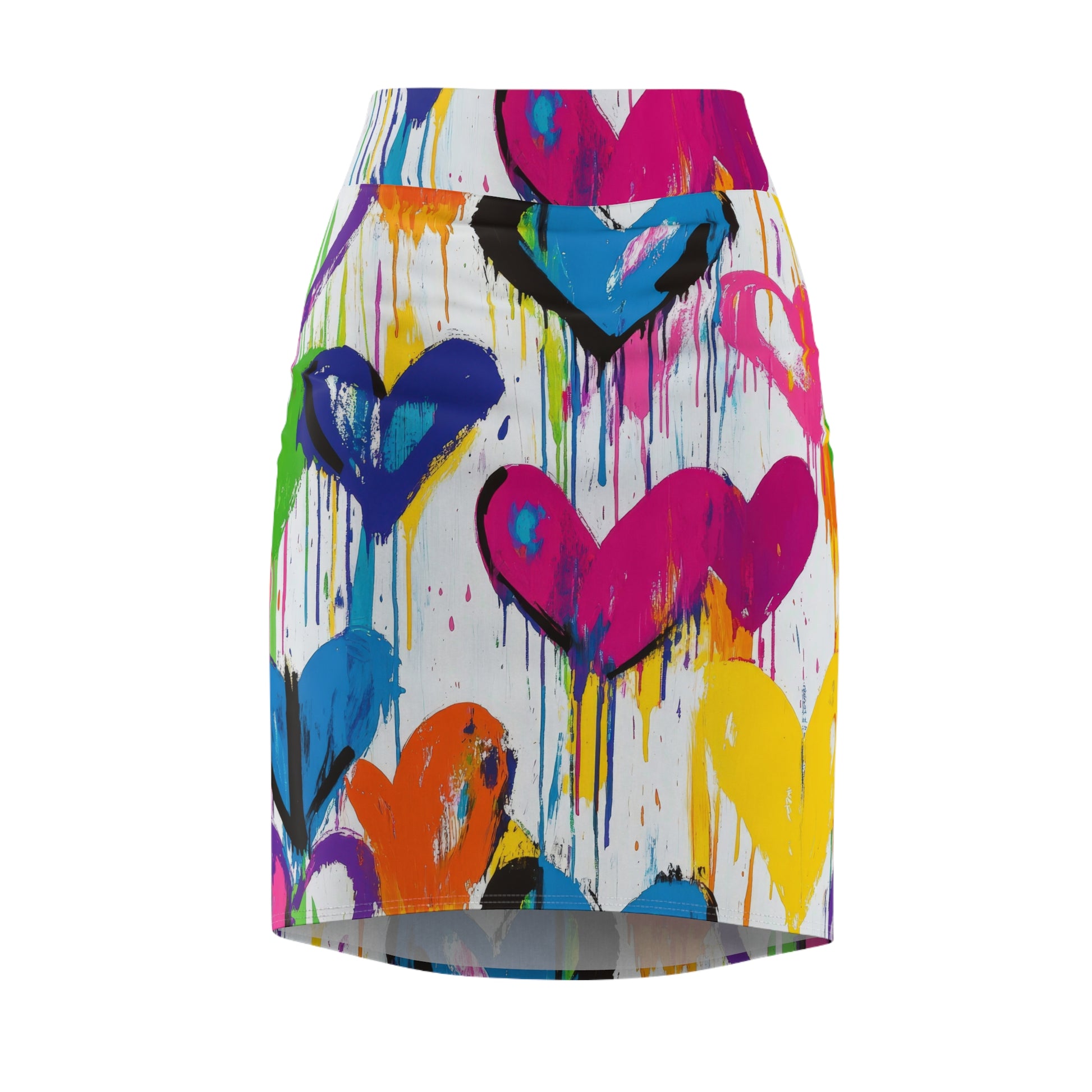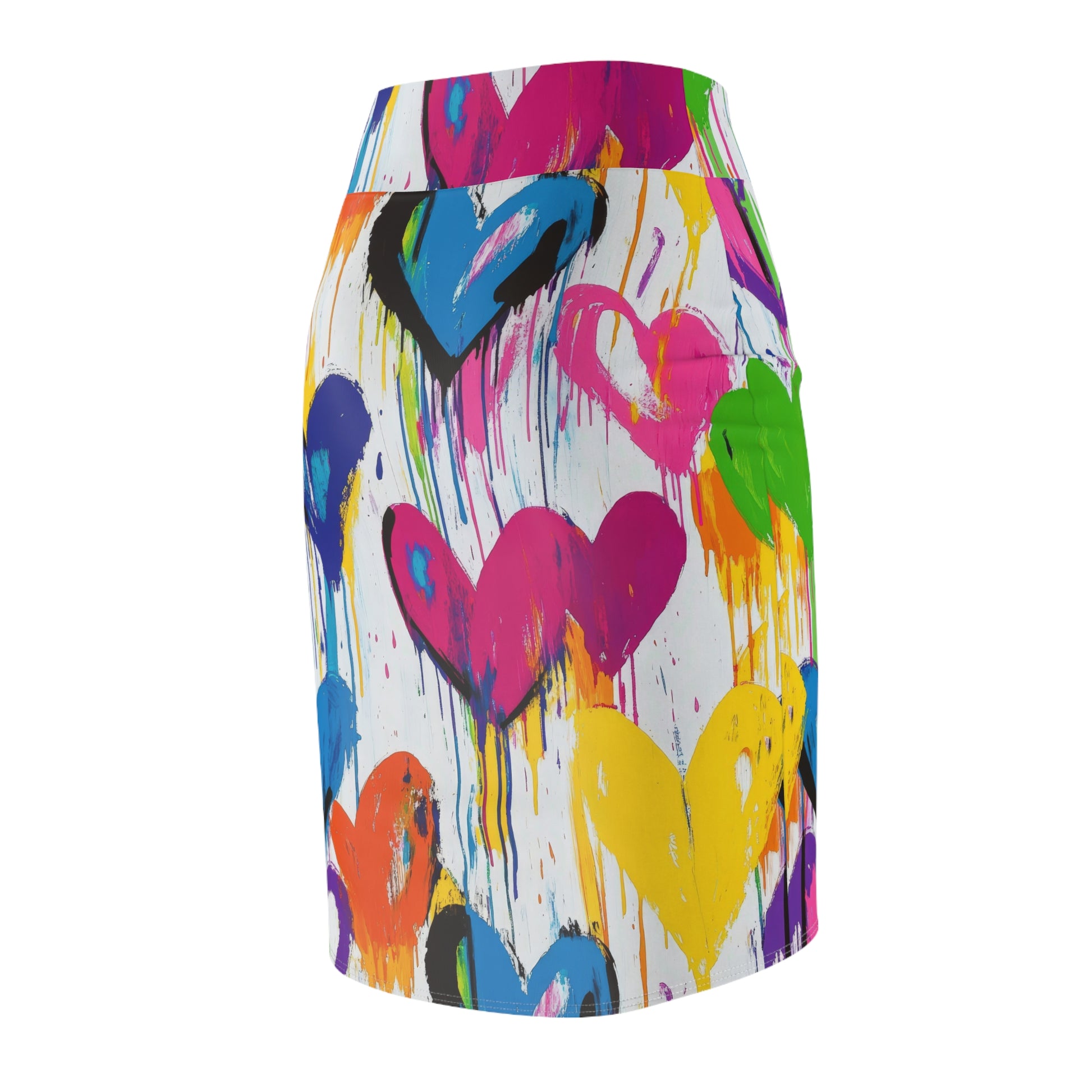 Zeig deine kreative Seite! Hol dir jetzt deinen Graffiti Hearts v6 Bleistiftrock und bringe Freude und Individualität in deinen Look!