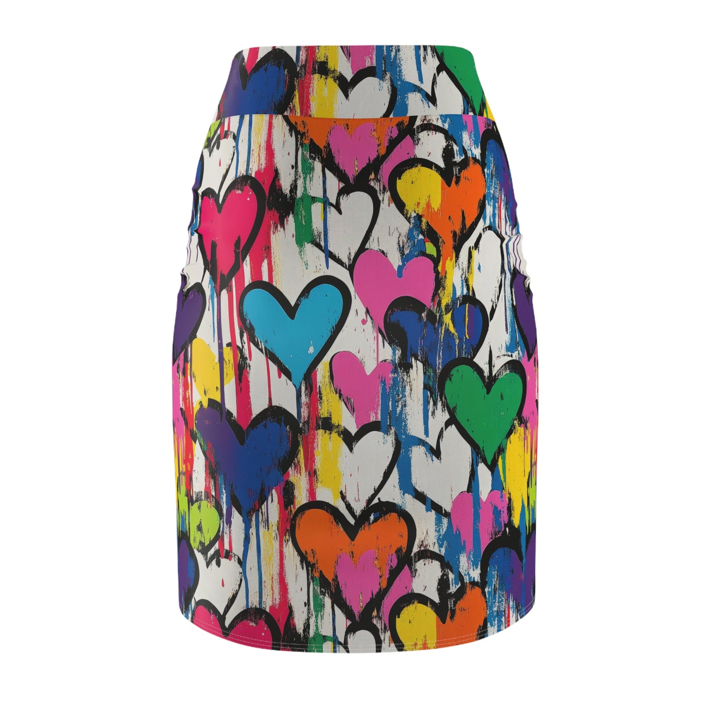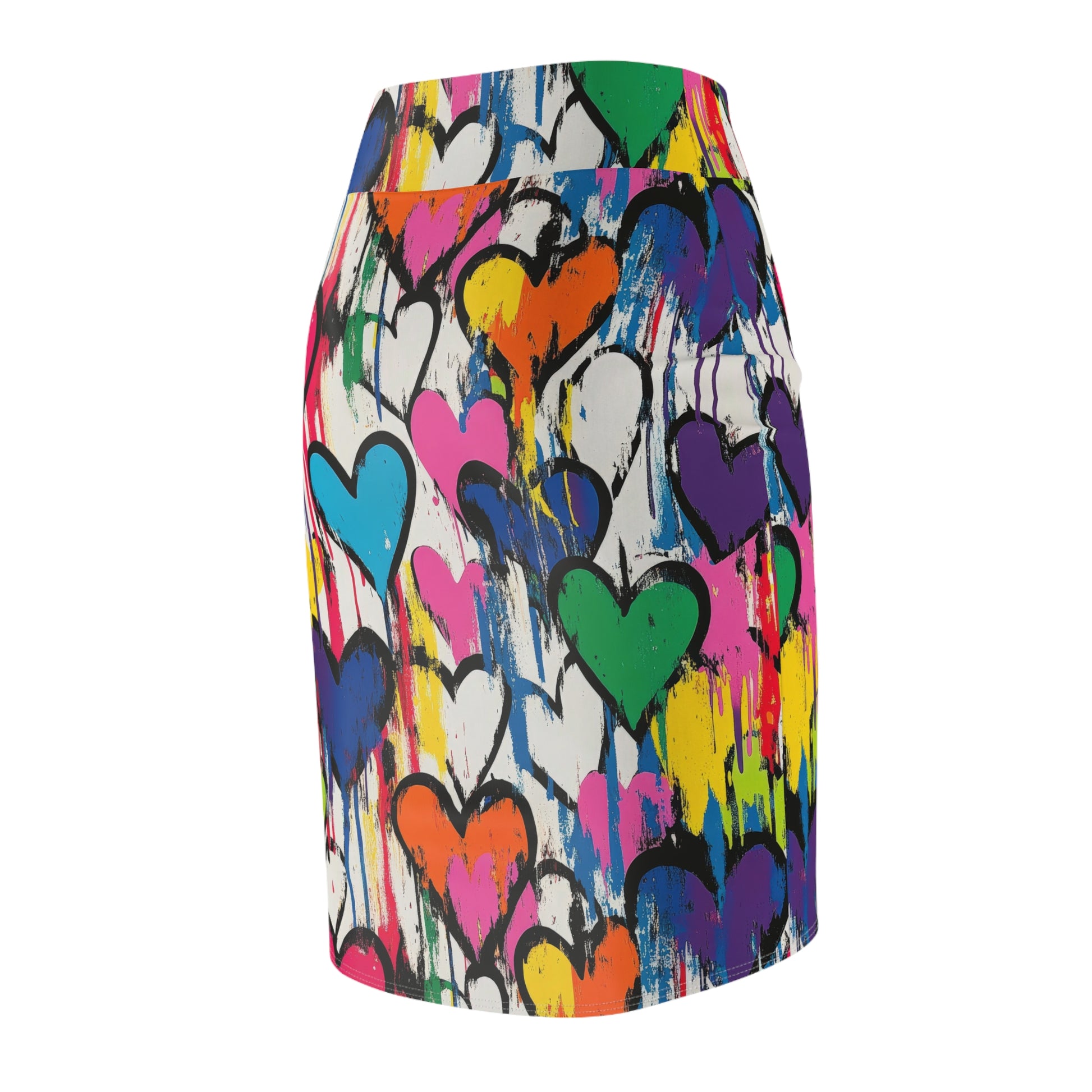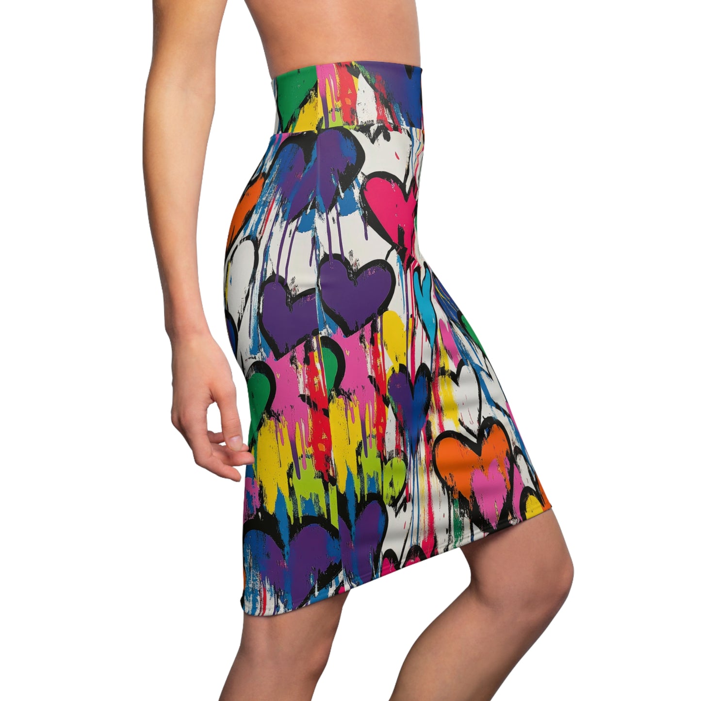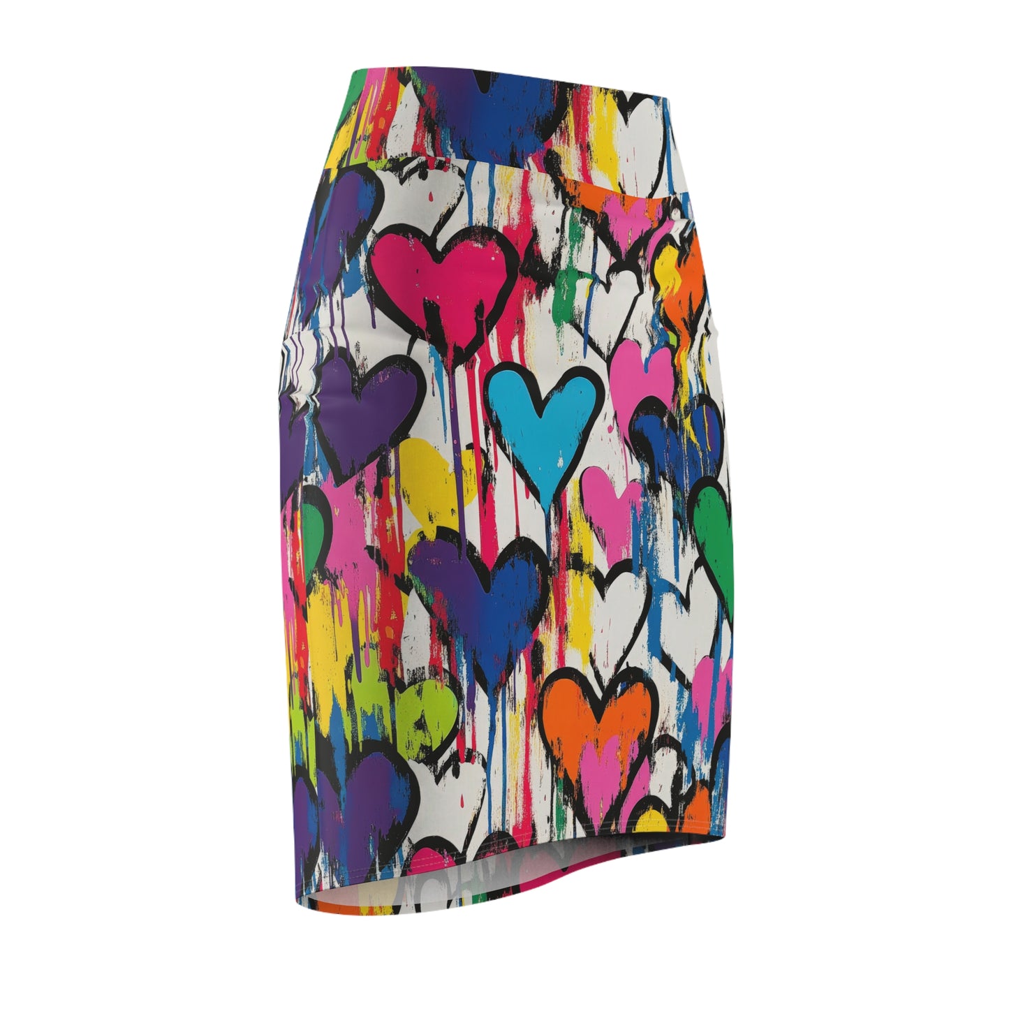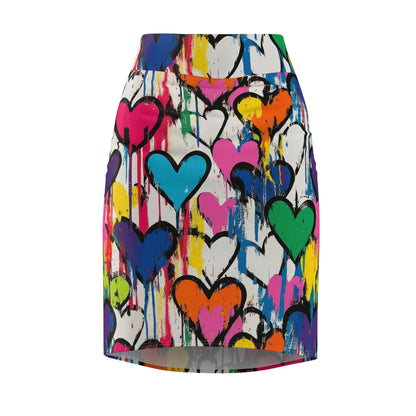 Zeig deine kreative Seite! Hol dir jetzt deinen Graffiti Hearts v7 Bleistiftrock und bringe Freude und Individualität in deinen Look!