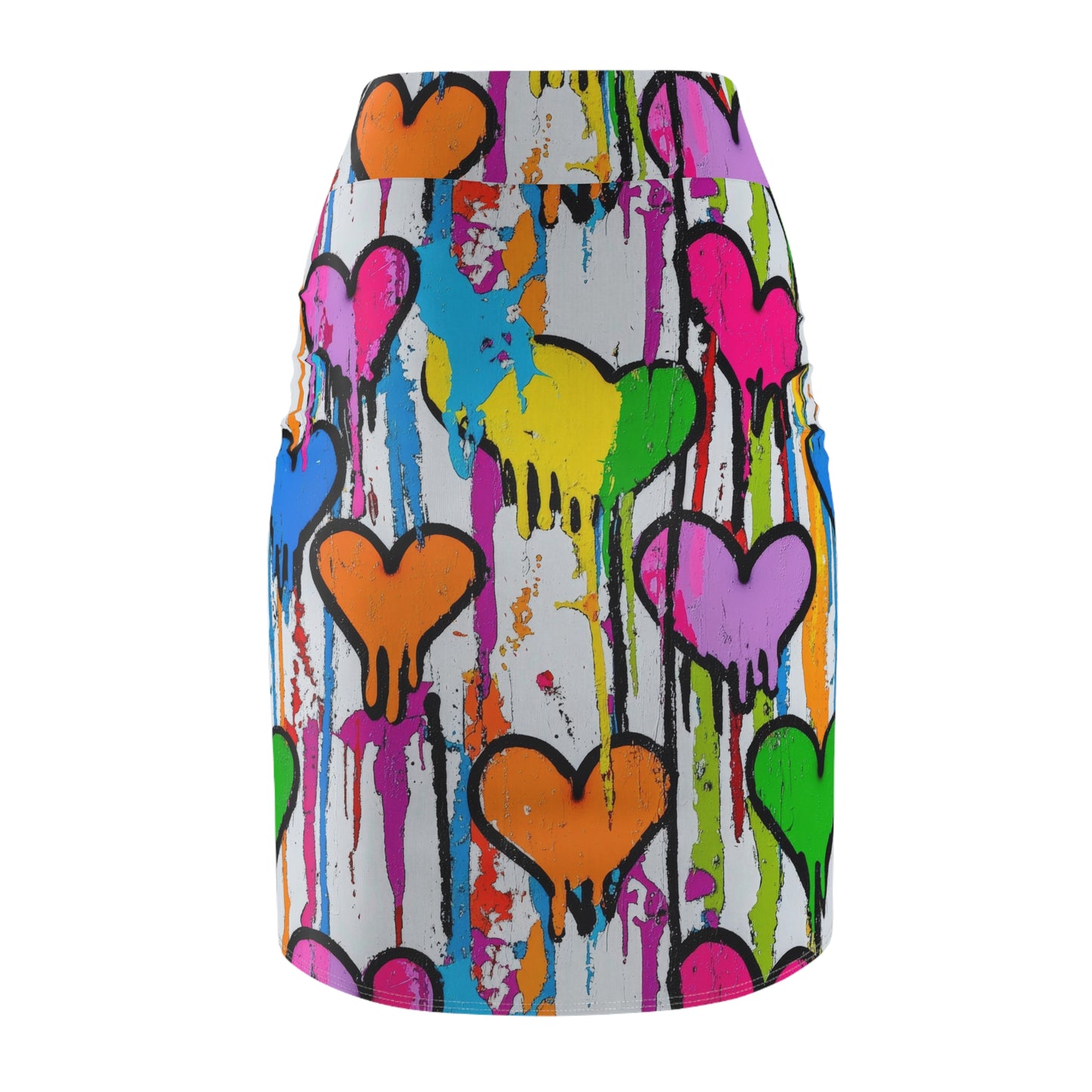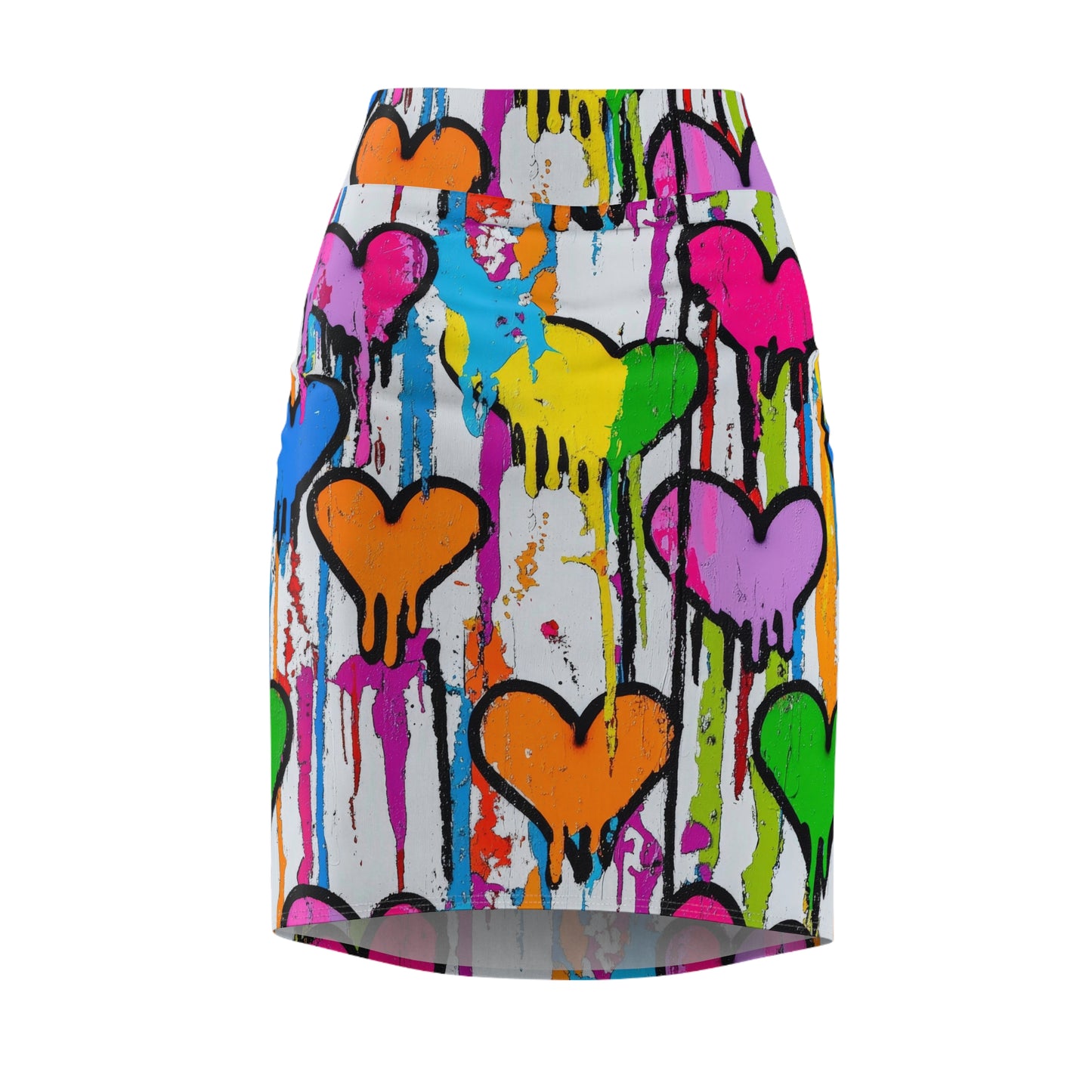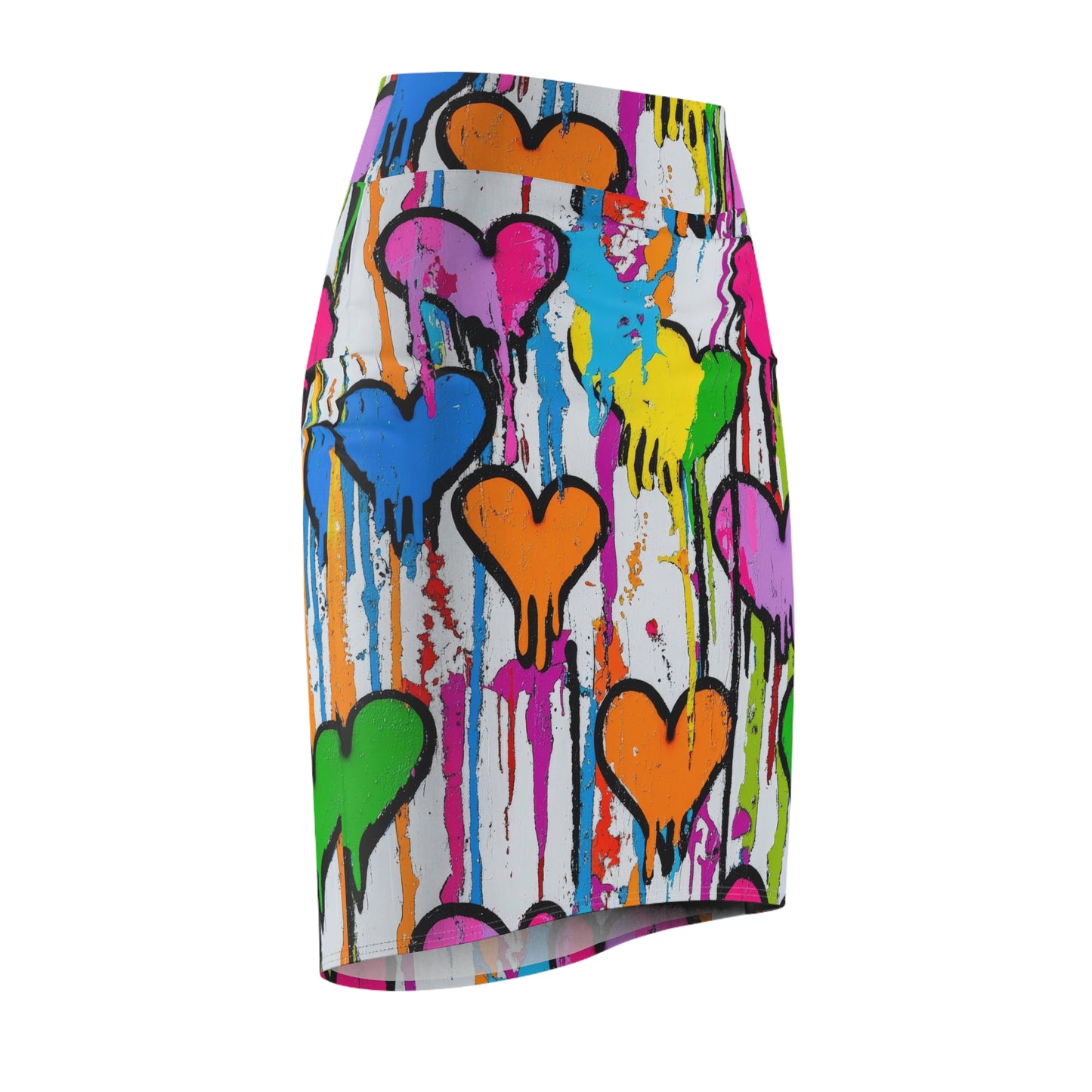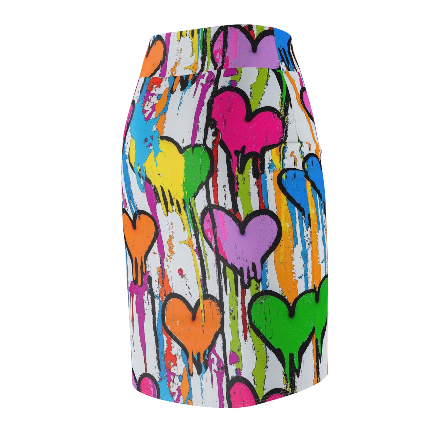 Diese lebendige Graffiti Hearts v9 Bleistiftrock ist die perfekte Ergänzung für jede modebewusste Garderobe.