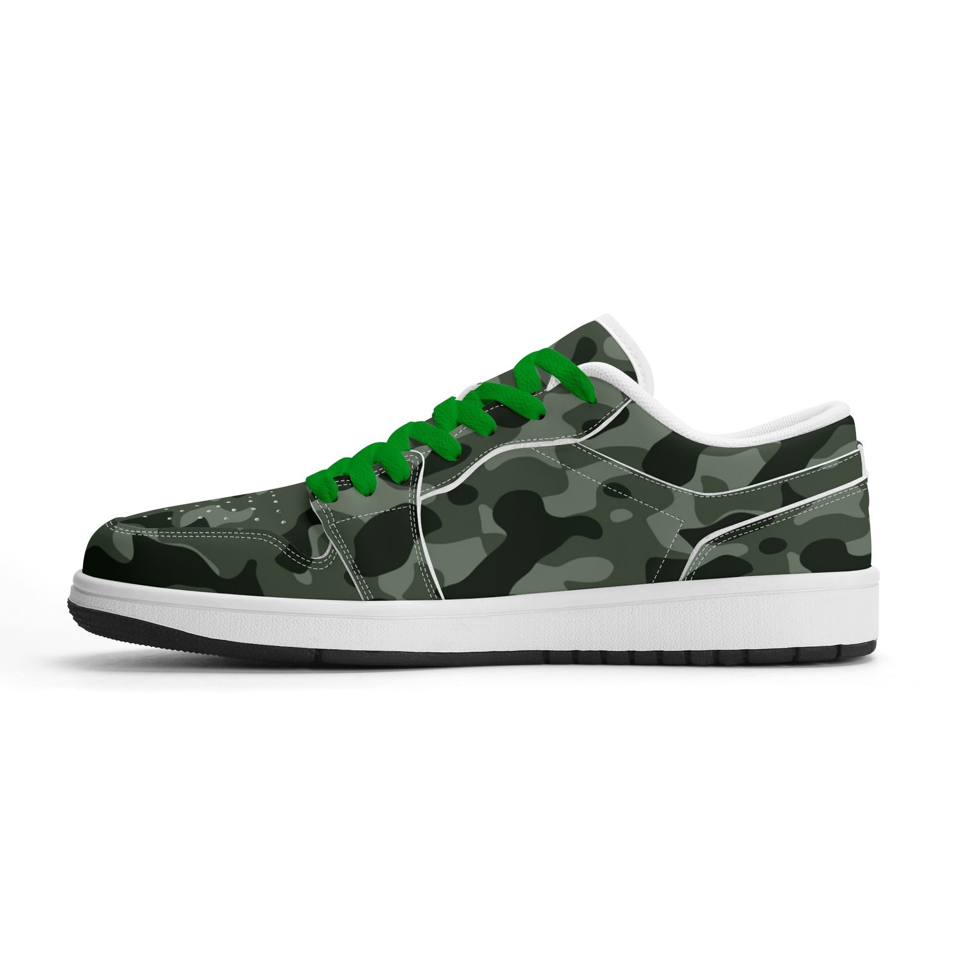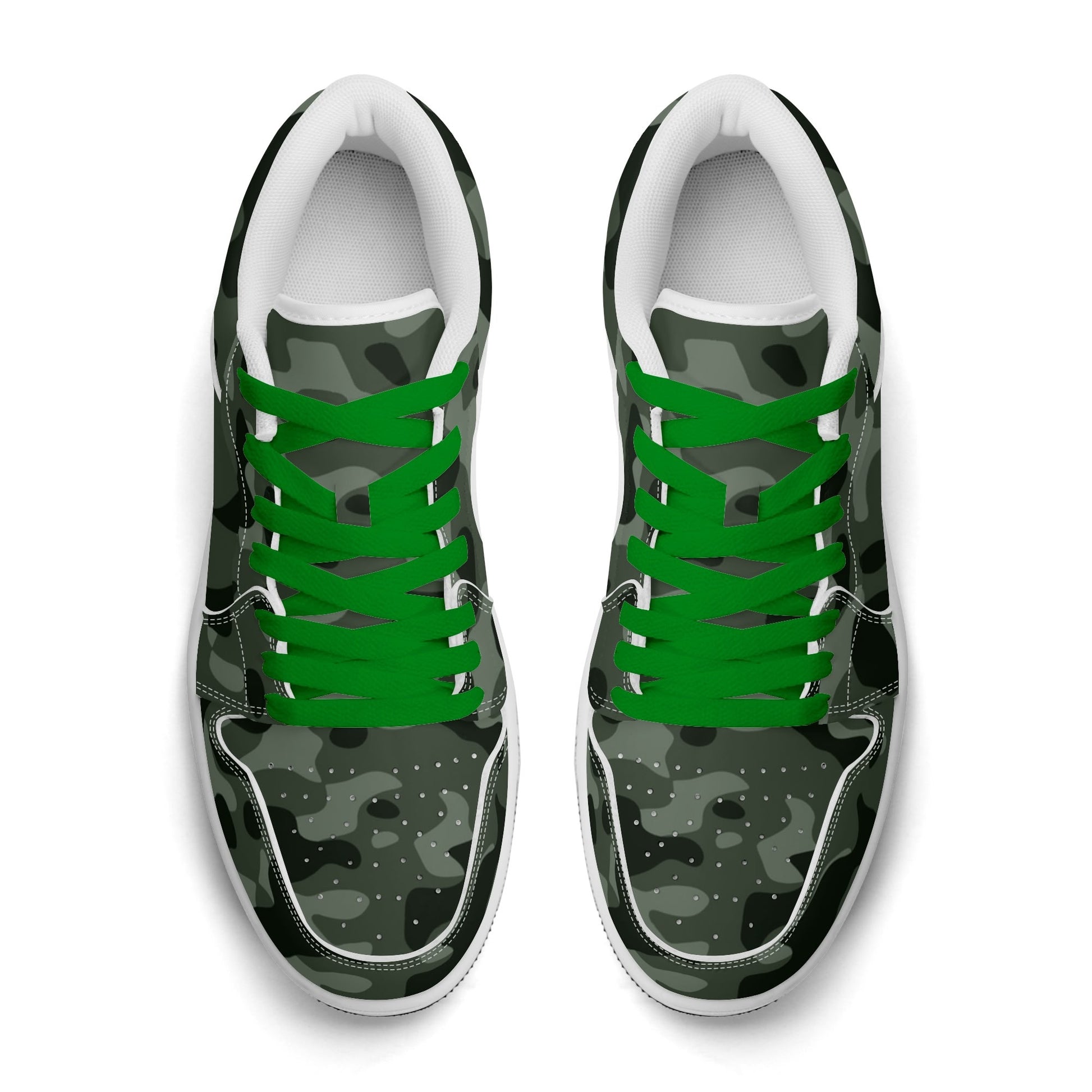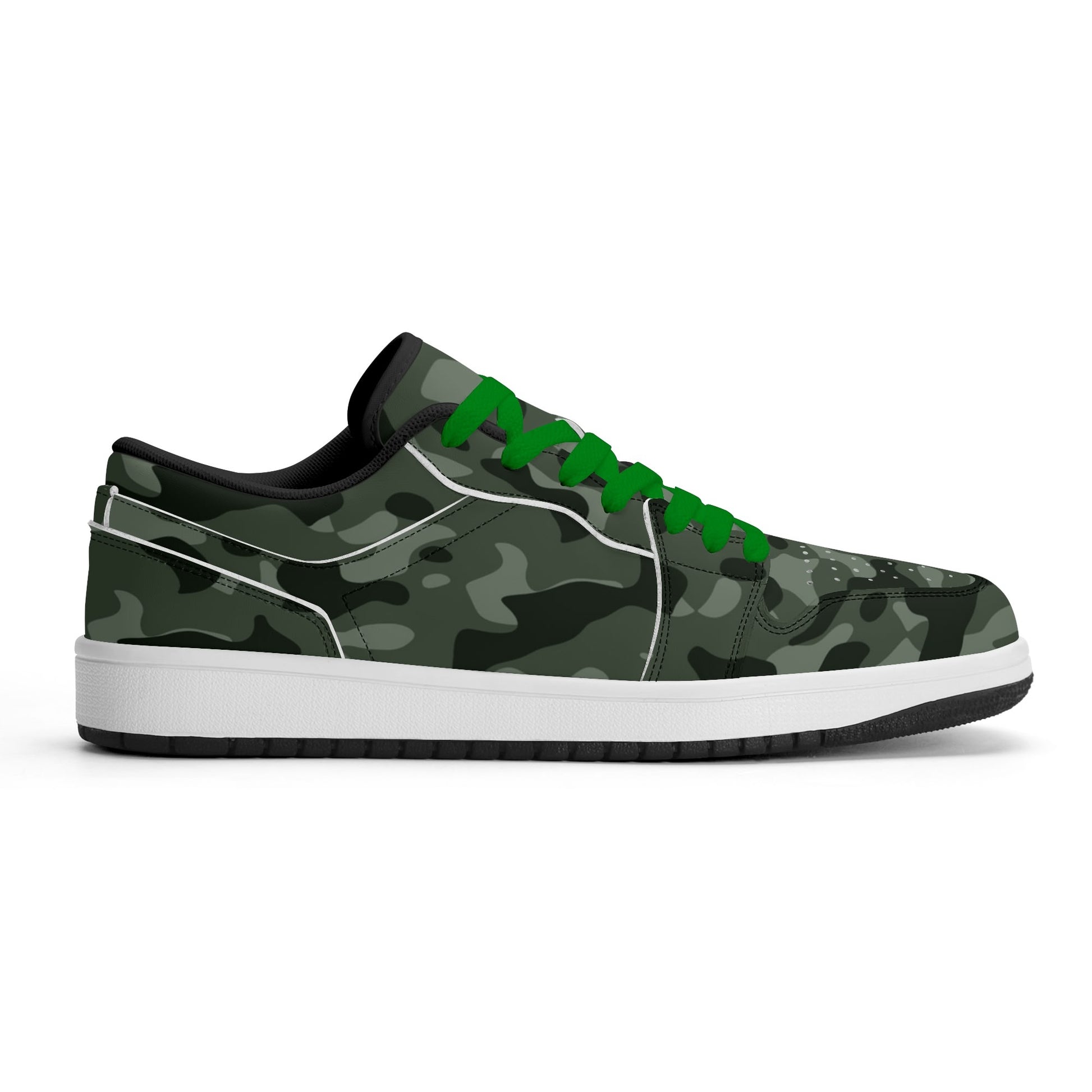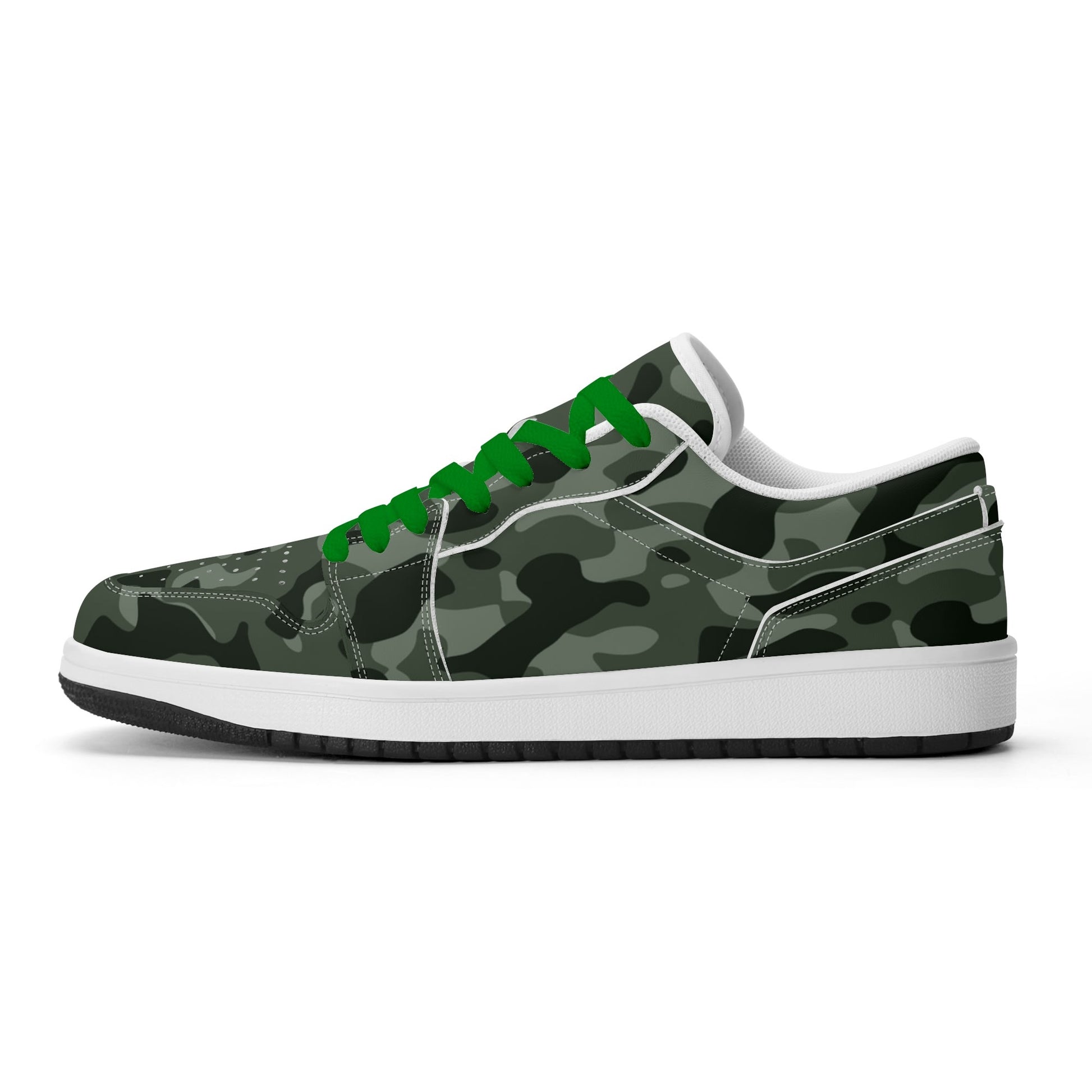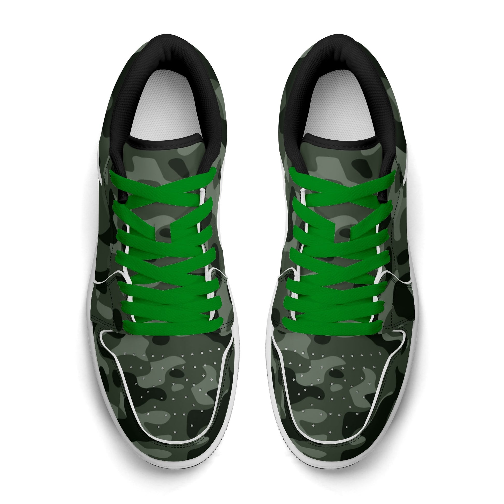 Setze ein modisches Statement mit Camouflage! Hol dir jetzt deine neuen Green Camouflage Low Top Leder Sneaker!