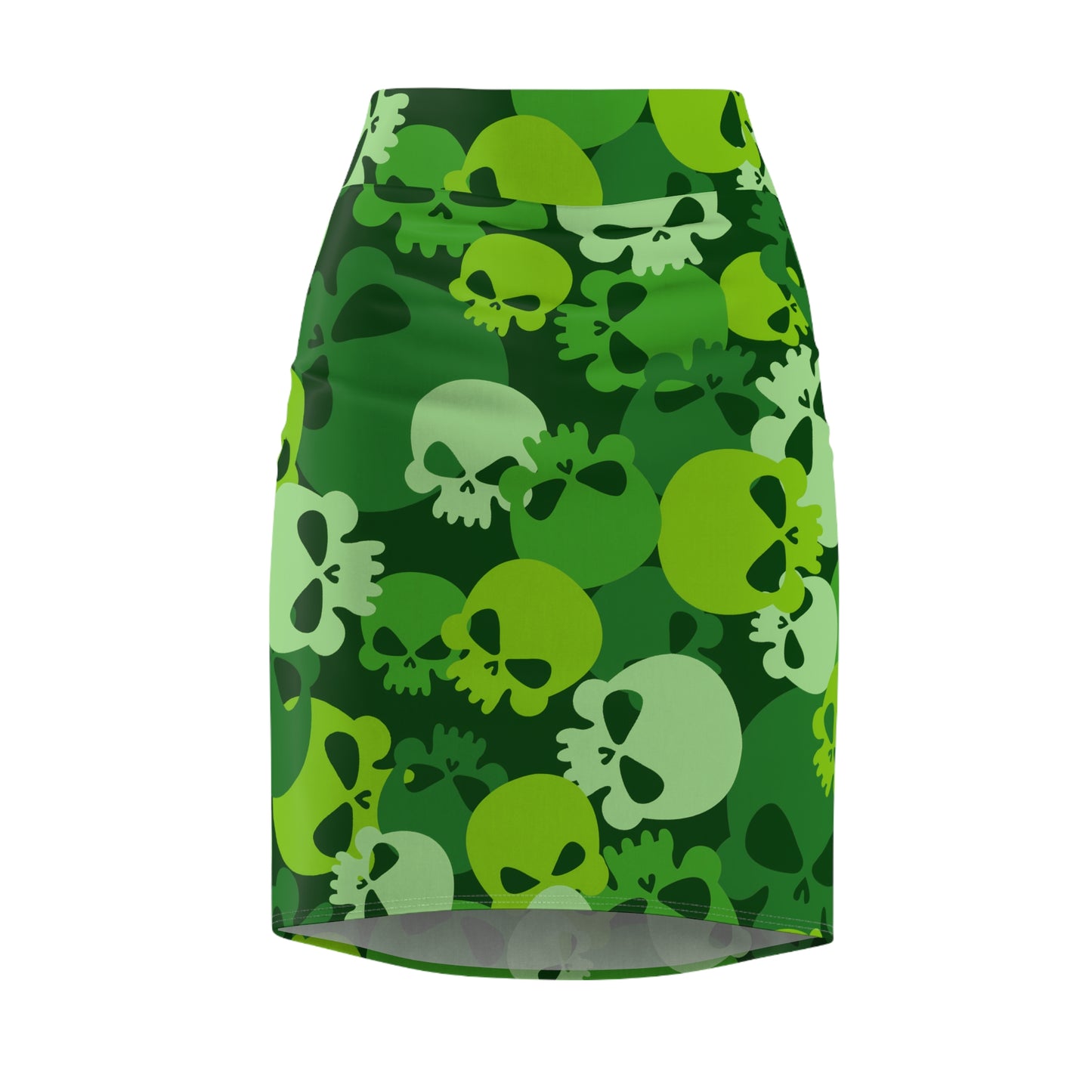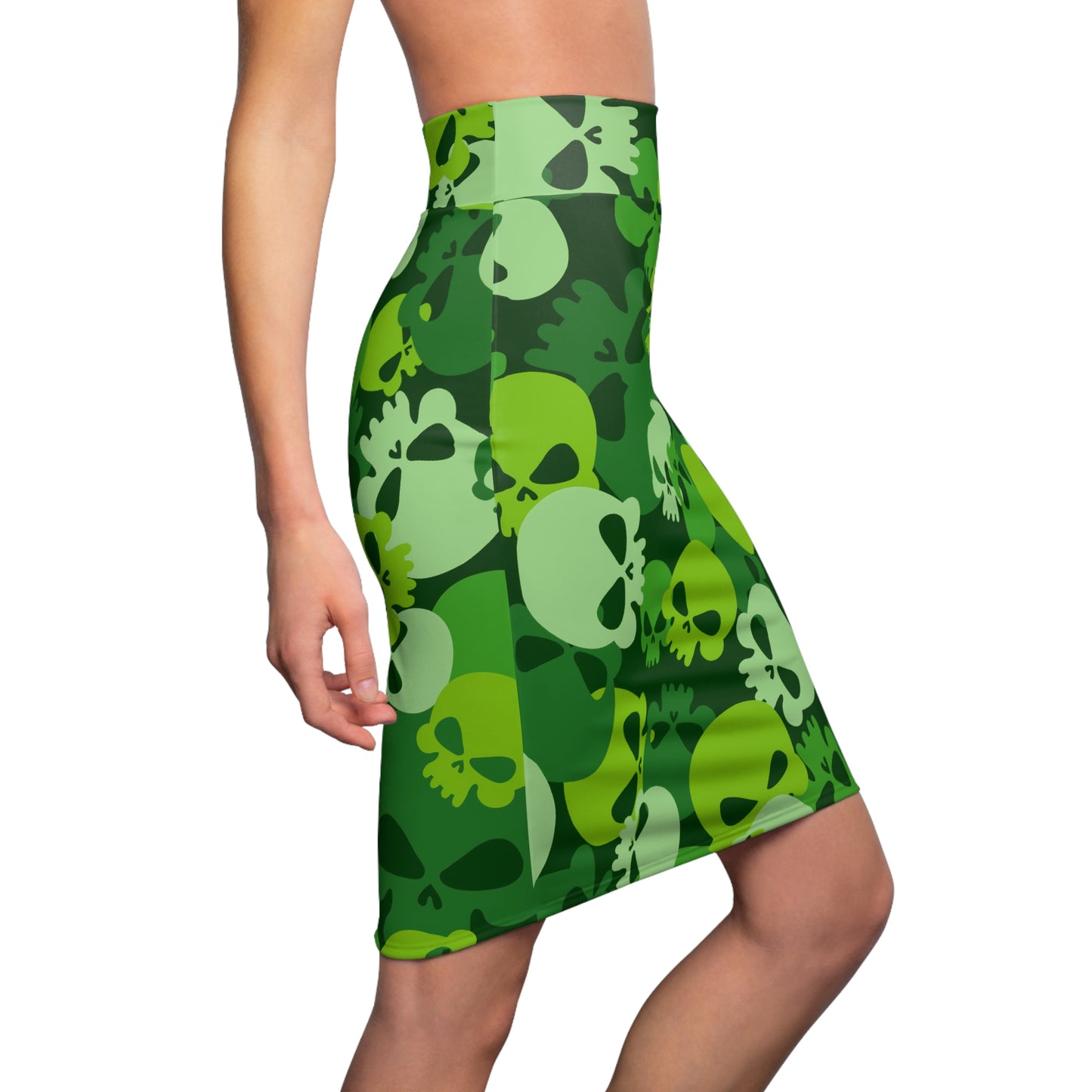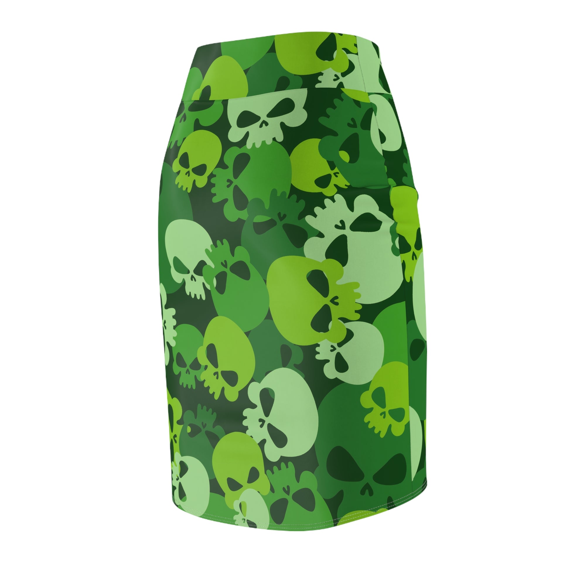 Verleihe deiner Garderobe das gewisse Etwas mit unserem Green Skull Bleistiftrock!