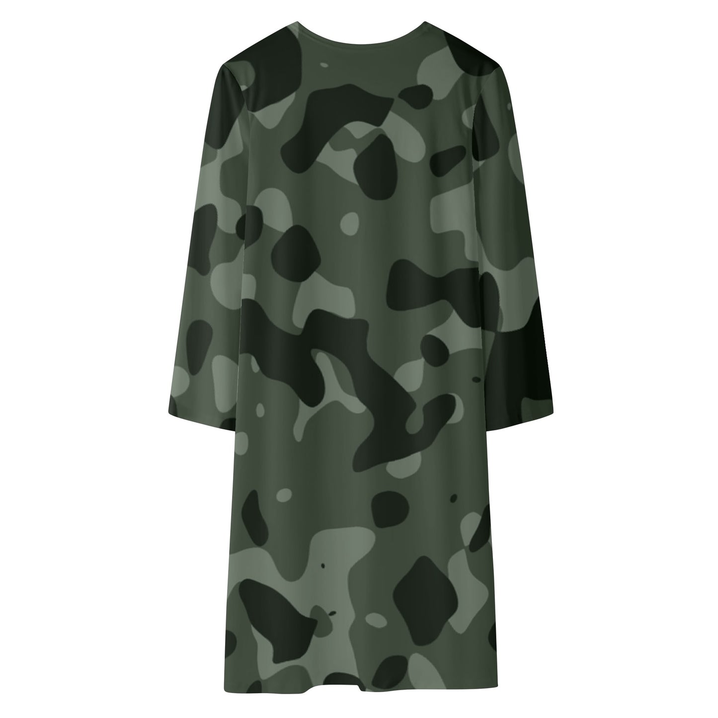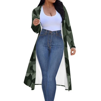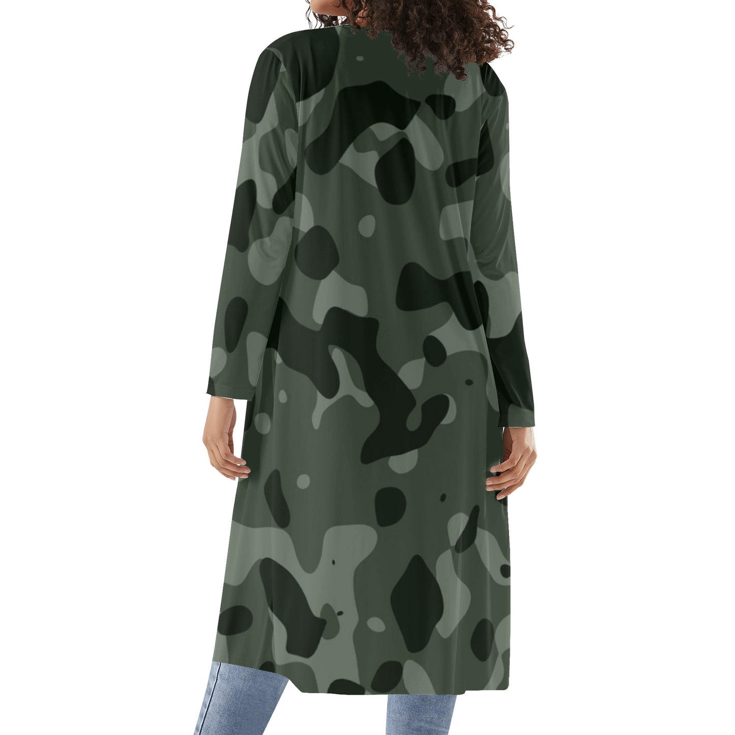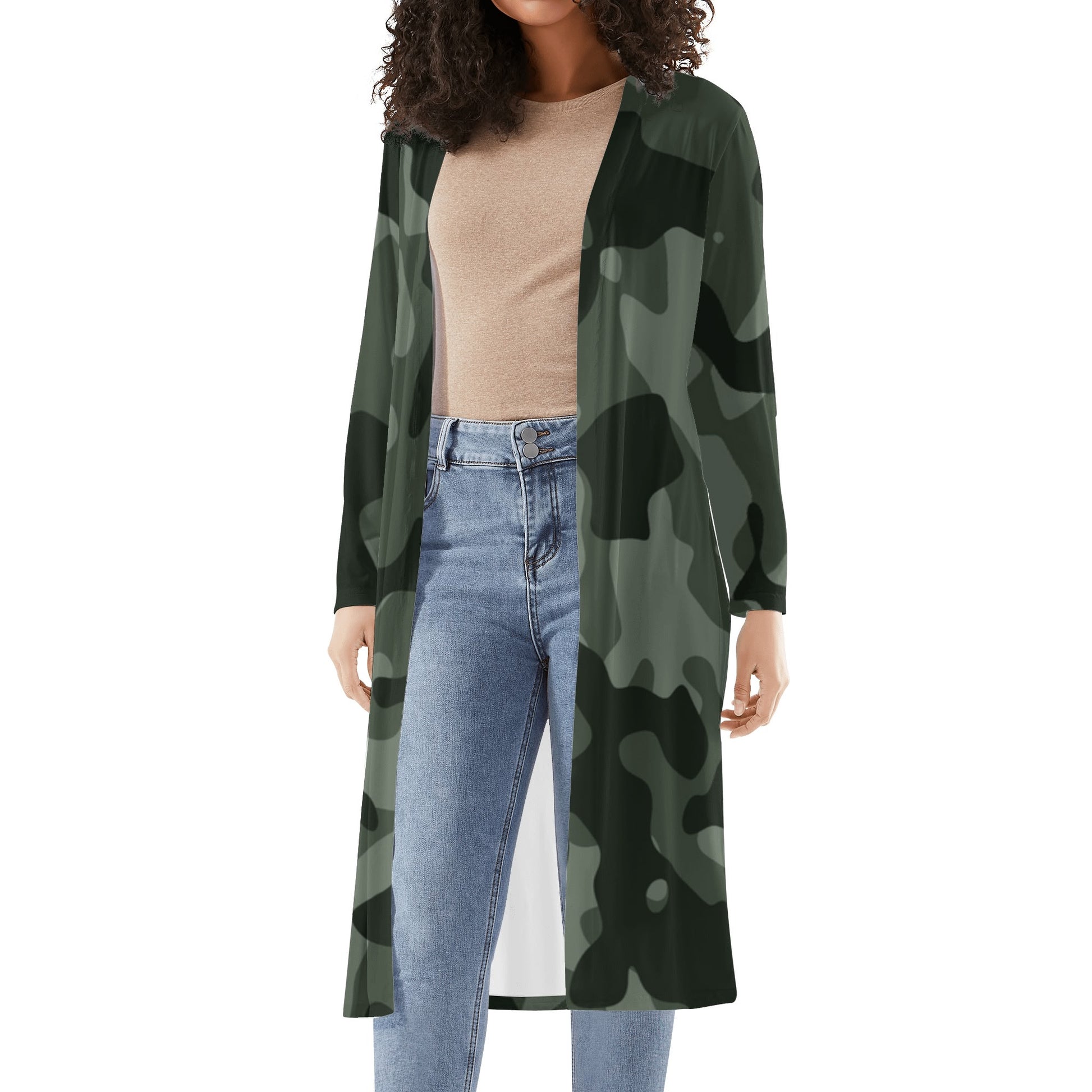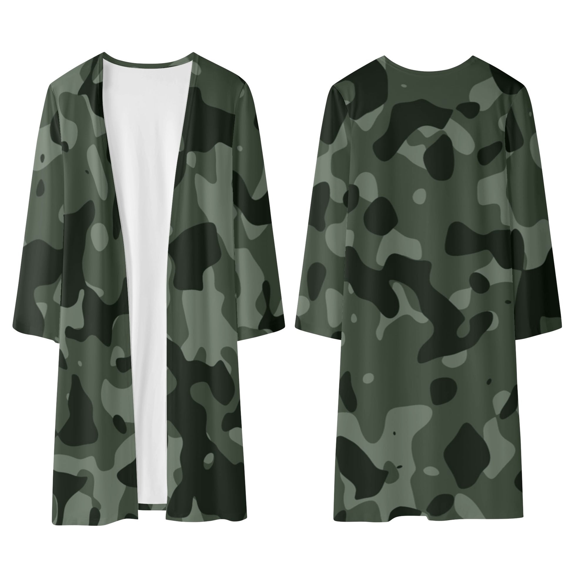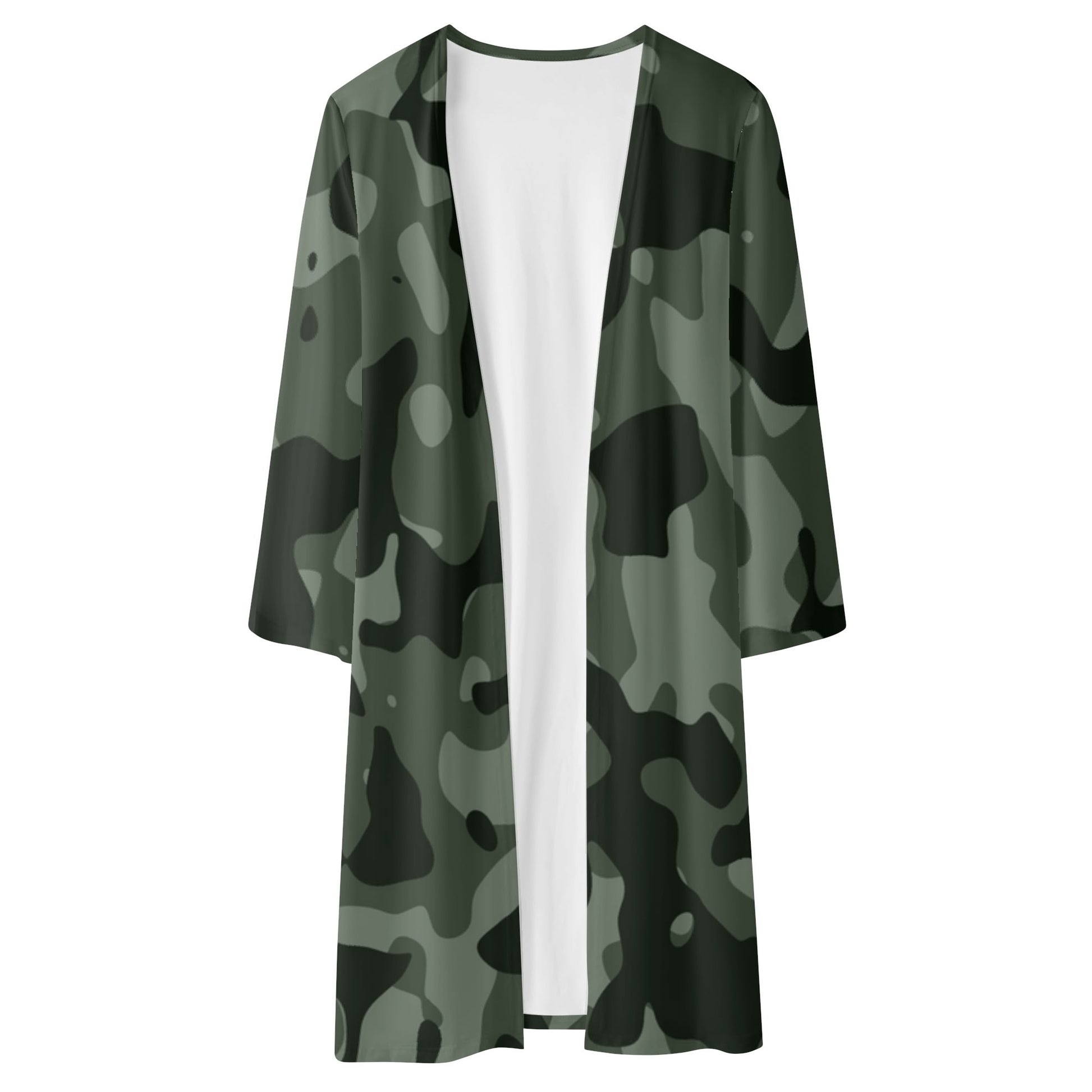 Dieser lange, leichte Kimono Cardigan im Green Camouflage-Muster ist ein trendstarkes Highlight für deine Garderobe.