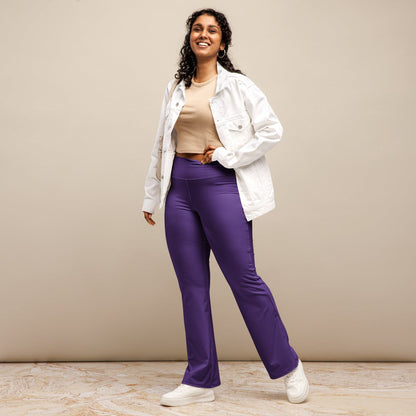 Investiere in Komfort und Stil: Bestelle jetzt deine Lila Flare Leggings und erlebe die perfekte Kombination aus Nachhaltigkeit, Funktion und Fashion!