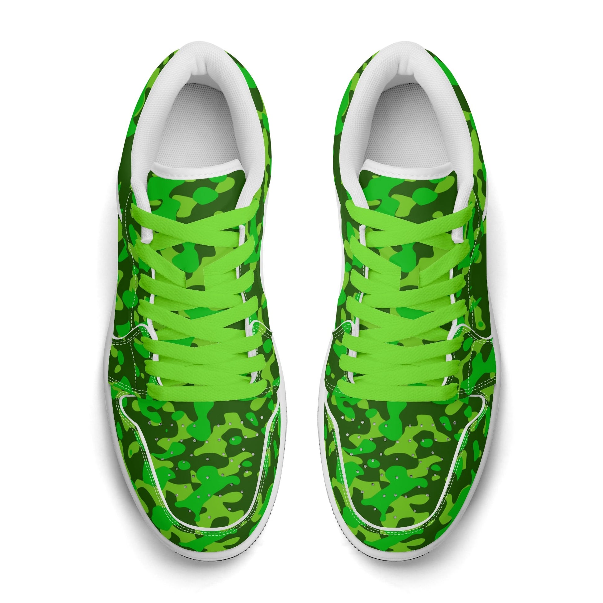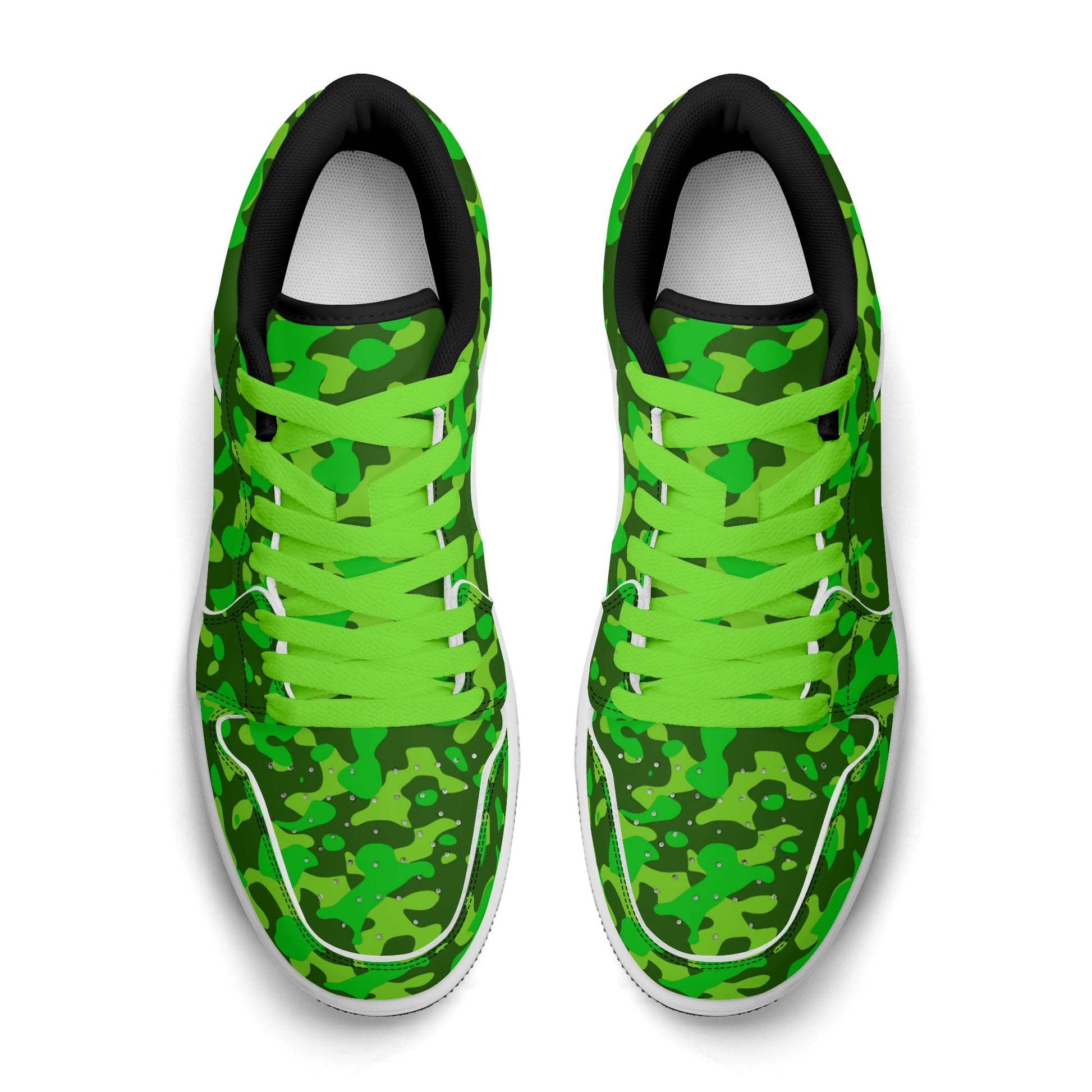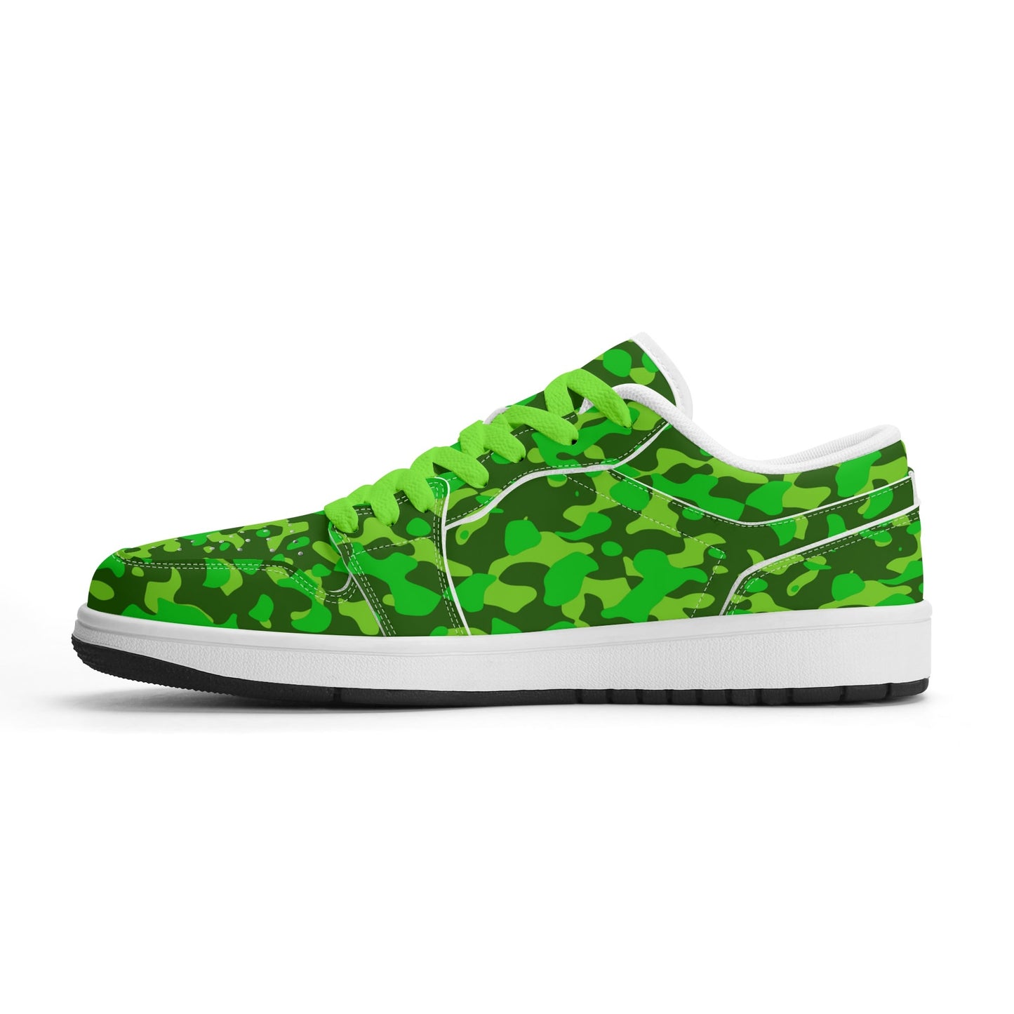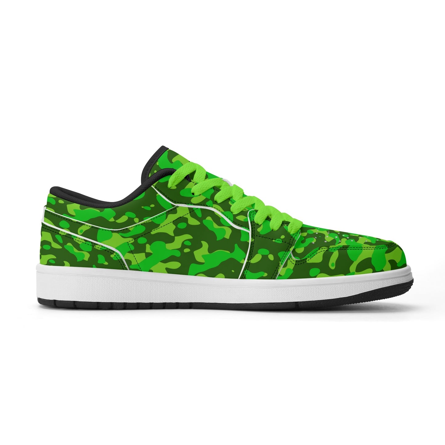 Setze ein modisches Statement mit Camouflage! Hol dir jetzt deine neuen Lime Green Camouflage Low Top Leder Sneaker!