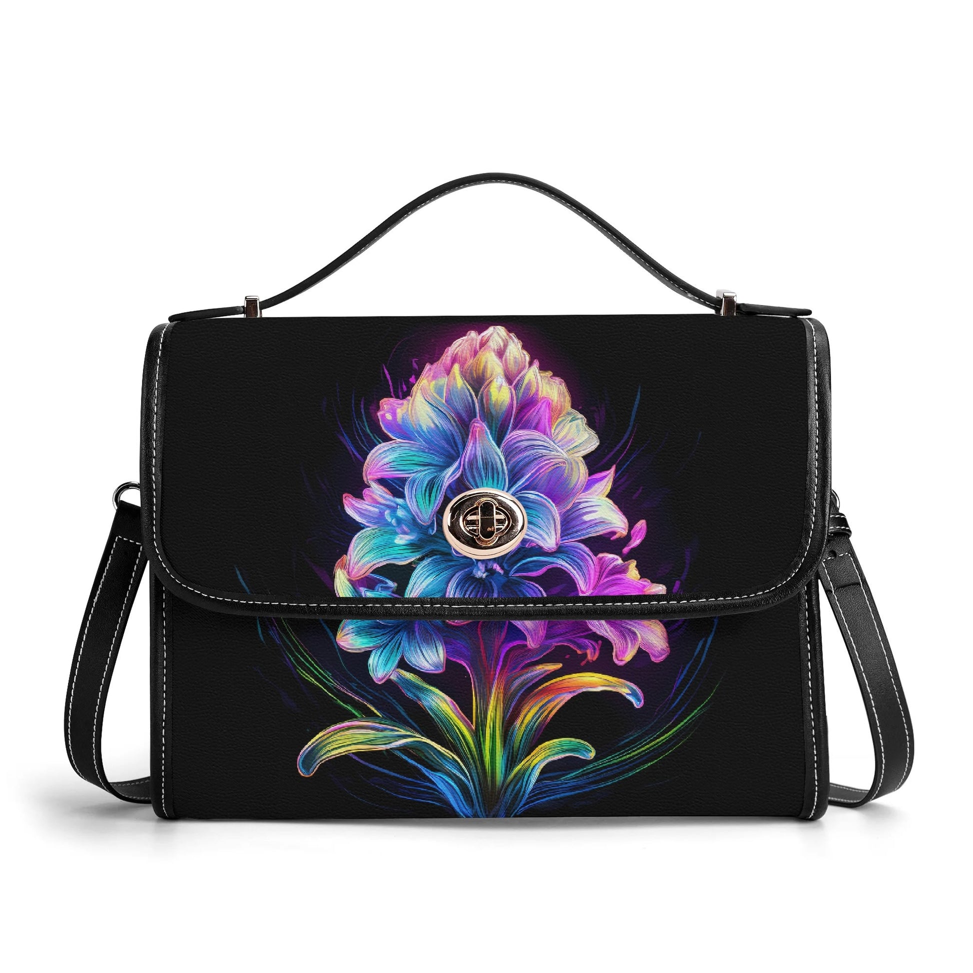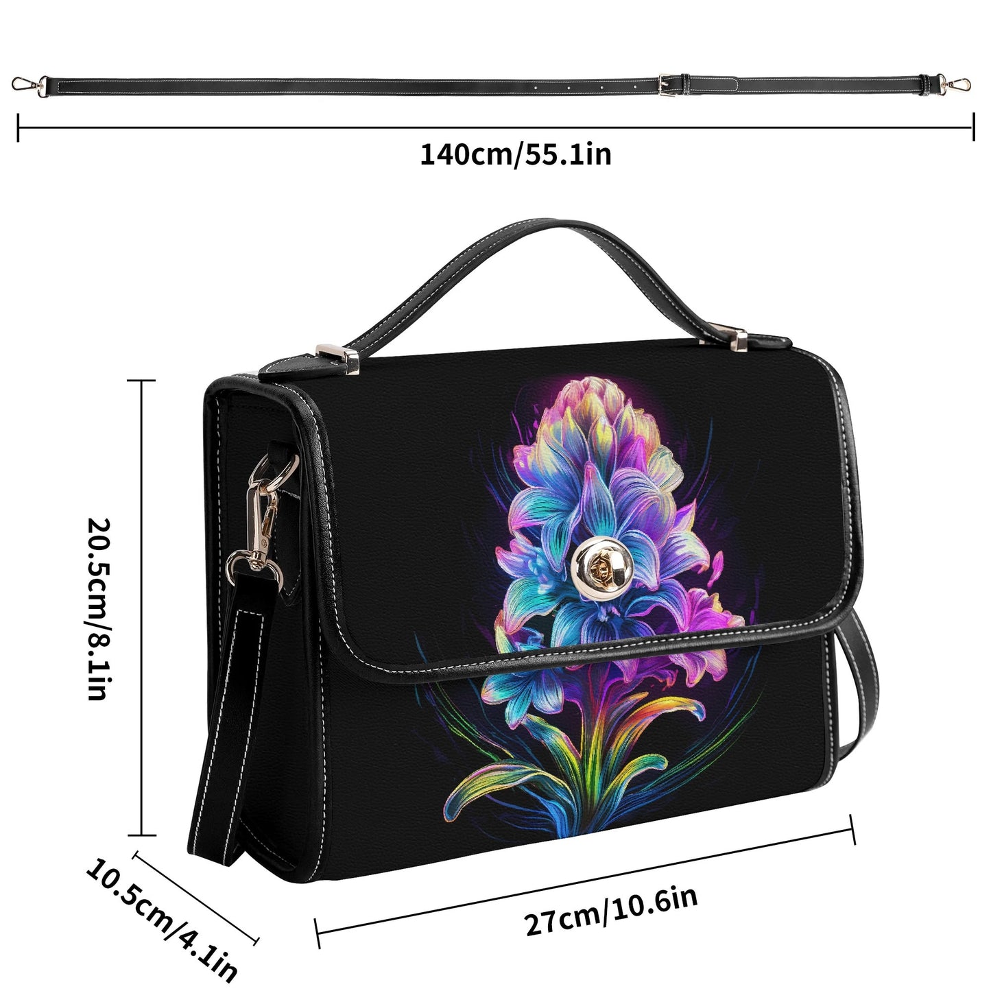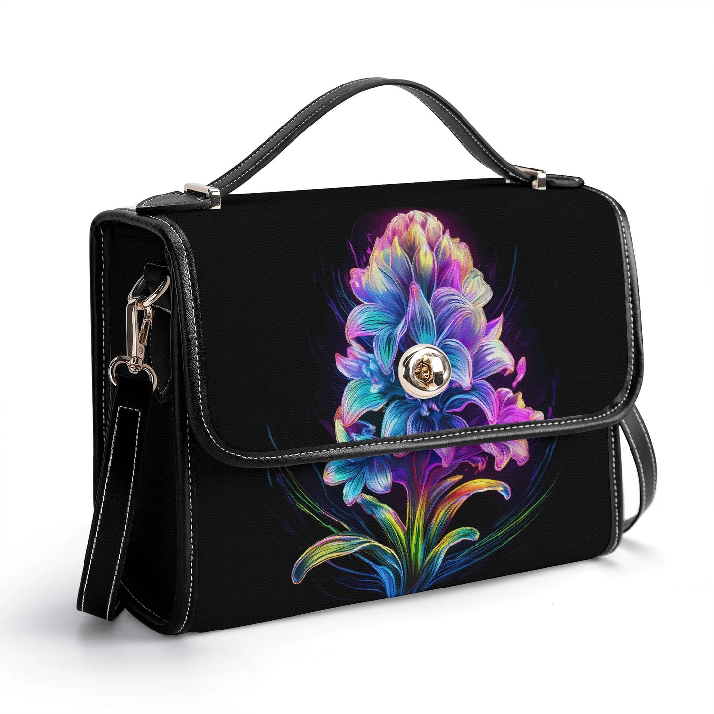 Das auffällige Neon-Hyazinthe-Design macht diese Tasche zu einem echten Blickfang und verleiht jedem Look eine moderne, dynamische Ausstrahlung.