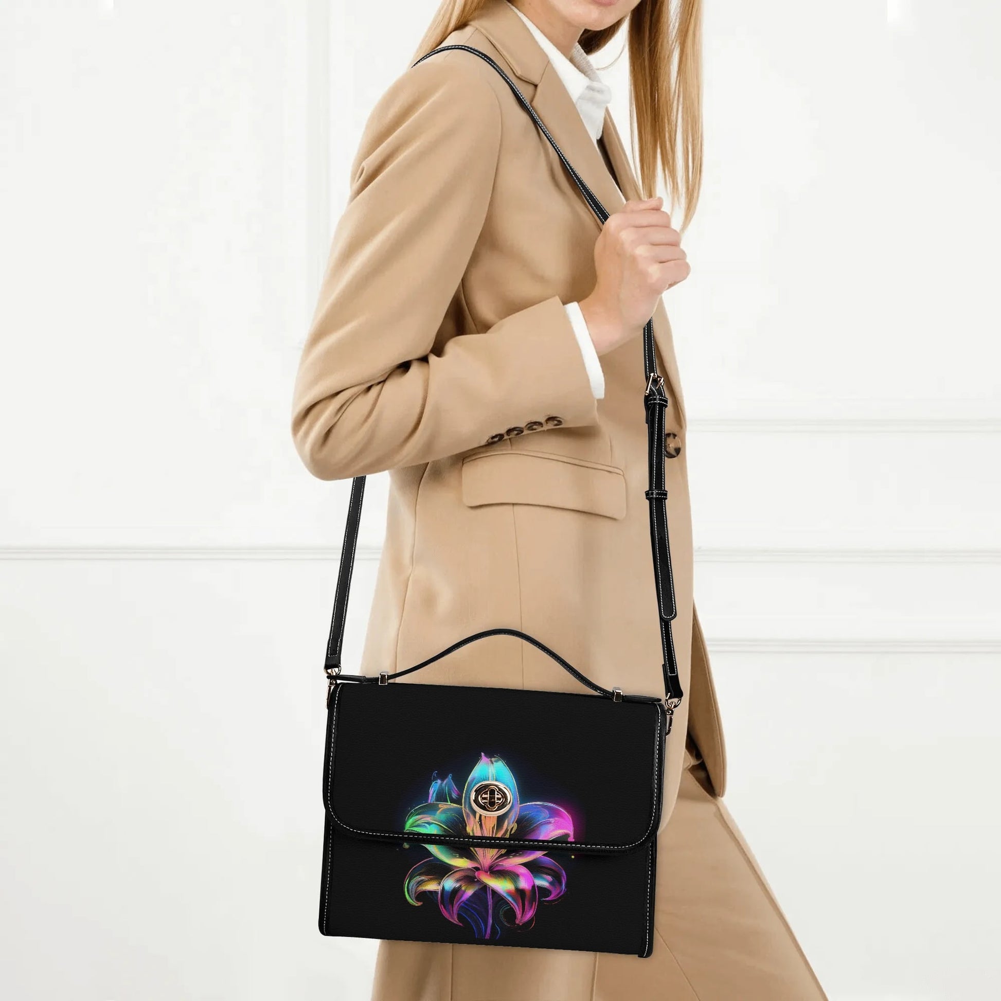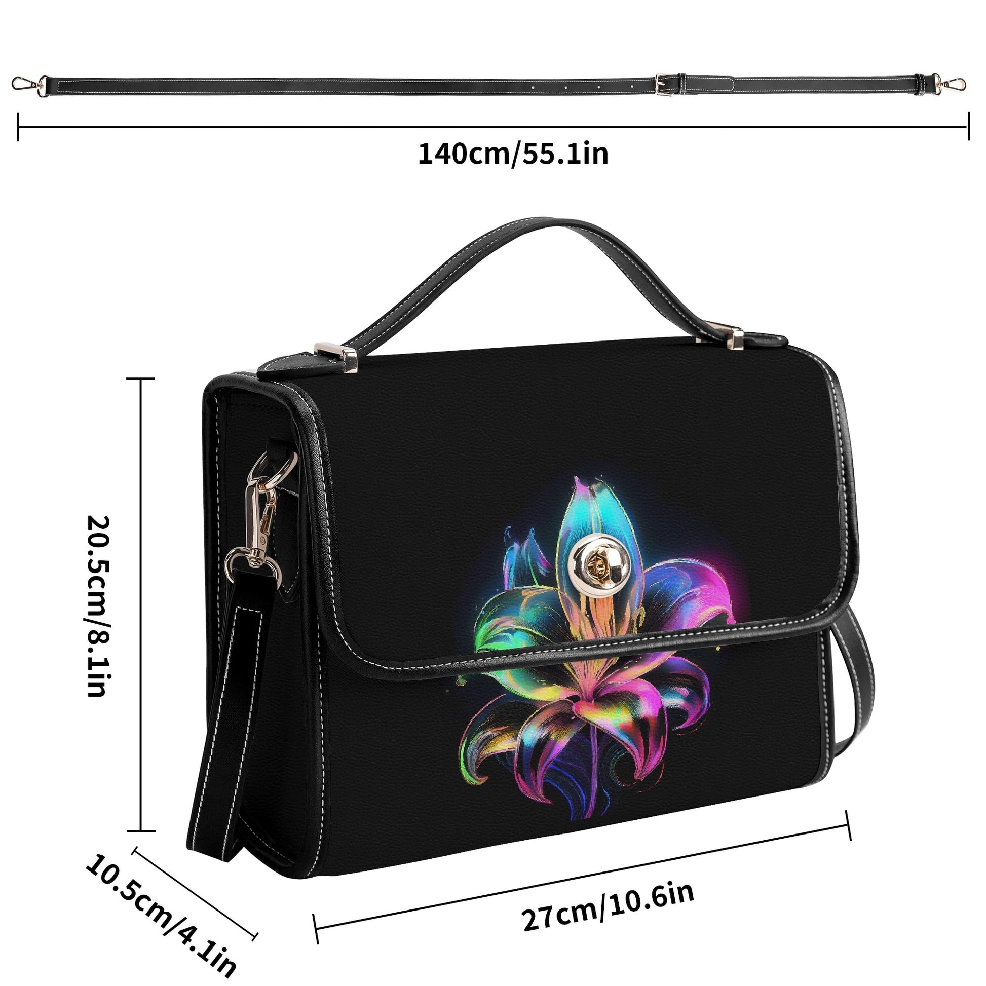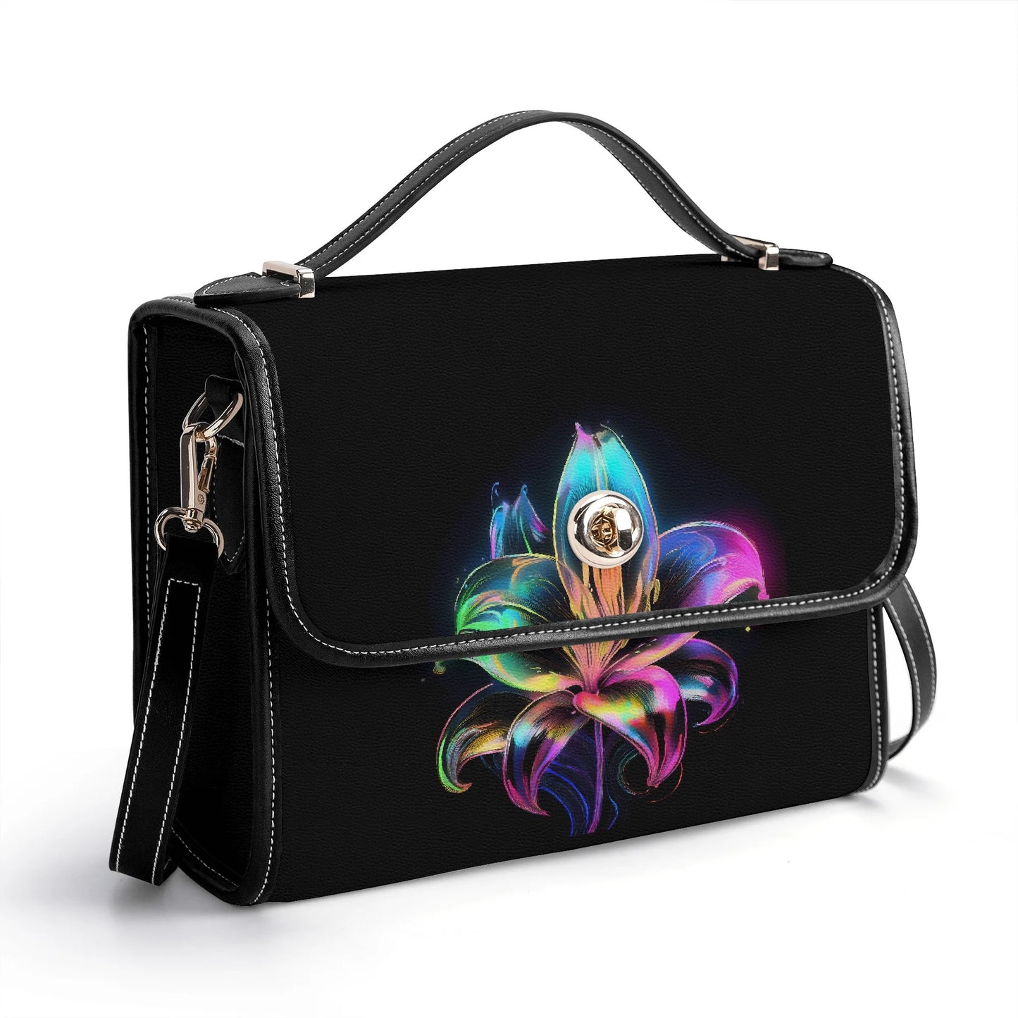 Das auffällige Neon-Lilie-Design macht diese Tasche zu einem echten Blickfang und verleiht jedem Look eine moderne, dynamische Ausstrahlung.