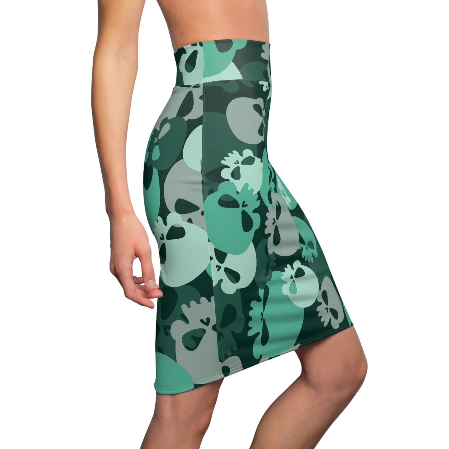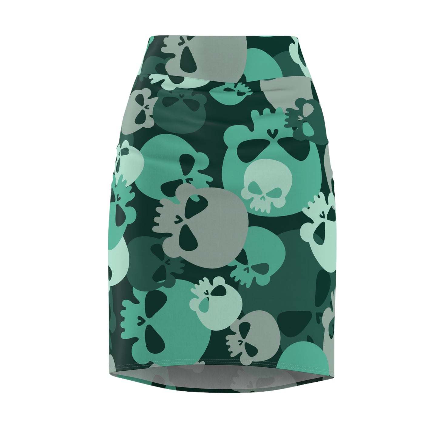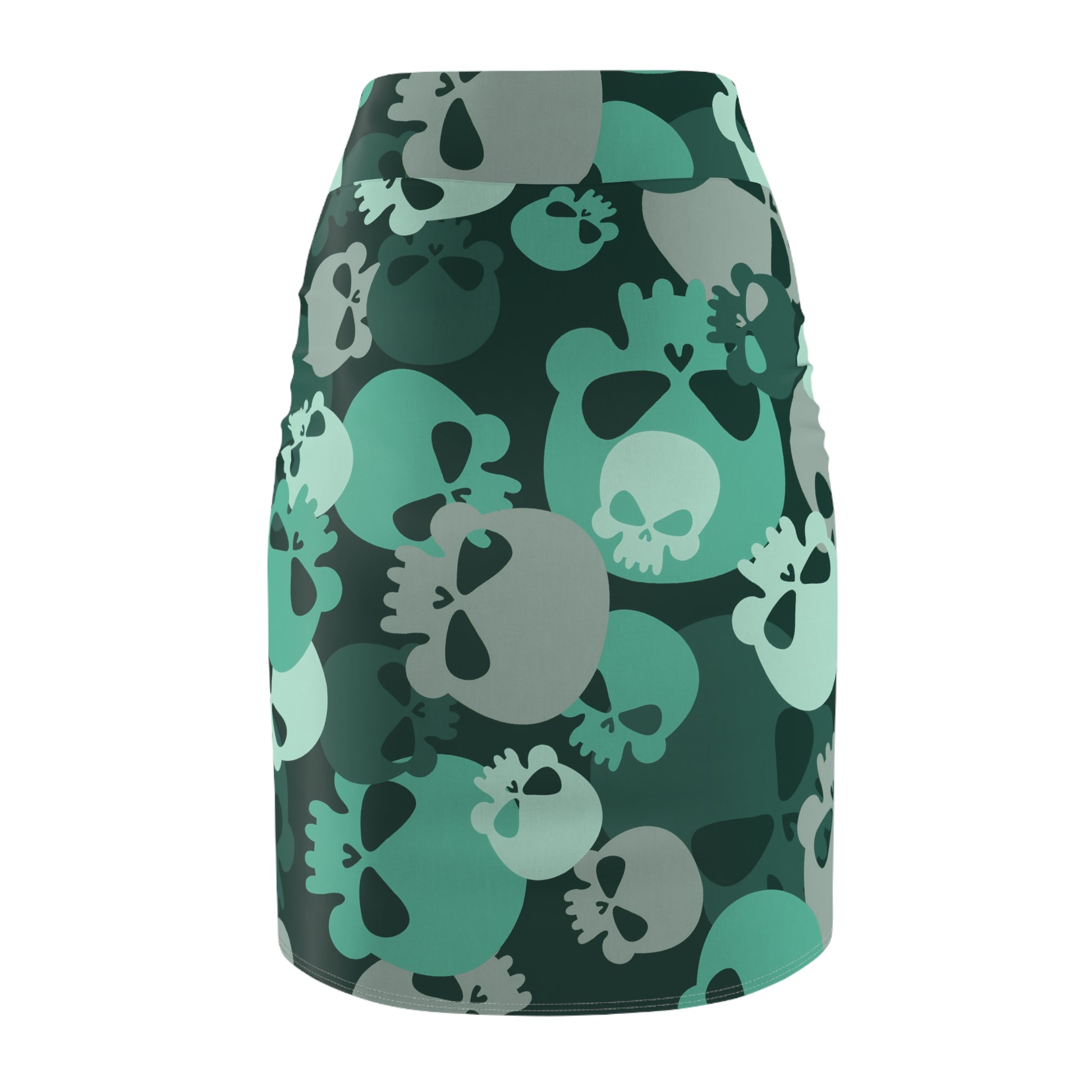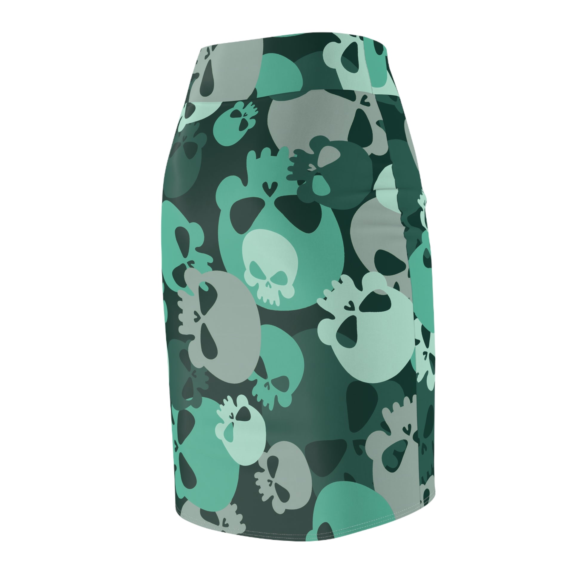 Dieser stylische Bleistiftrock wurde für alle entworfen, die gerne ein Statement setzen. Das lebendige Design zeigt ein auffälliges Skull-Muster, das jedem Outfit einen Hauch von edgy Flair verleiht.