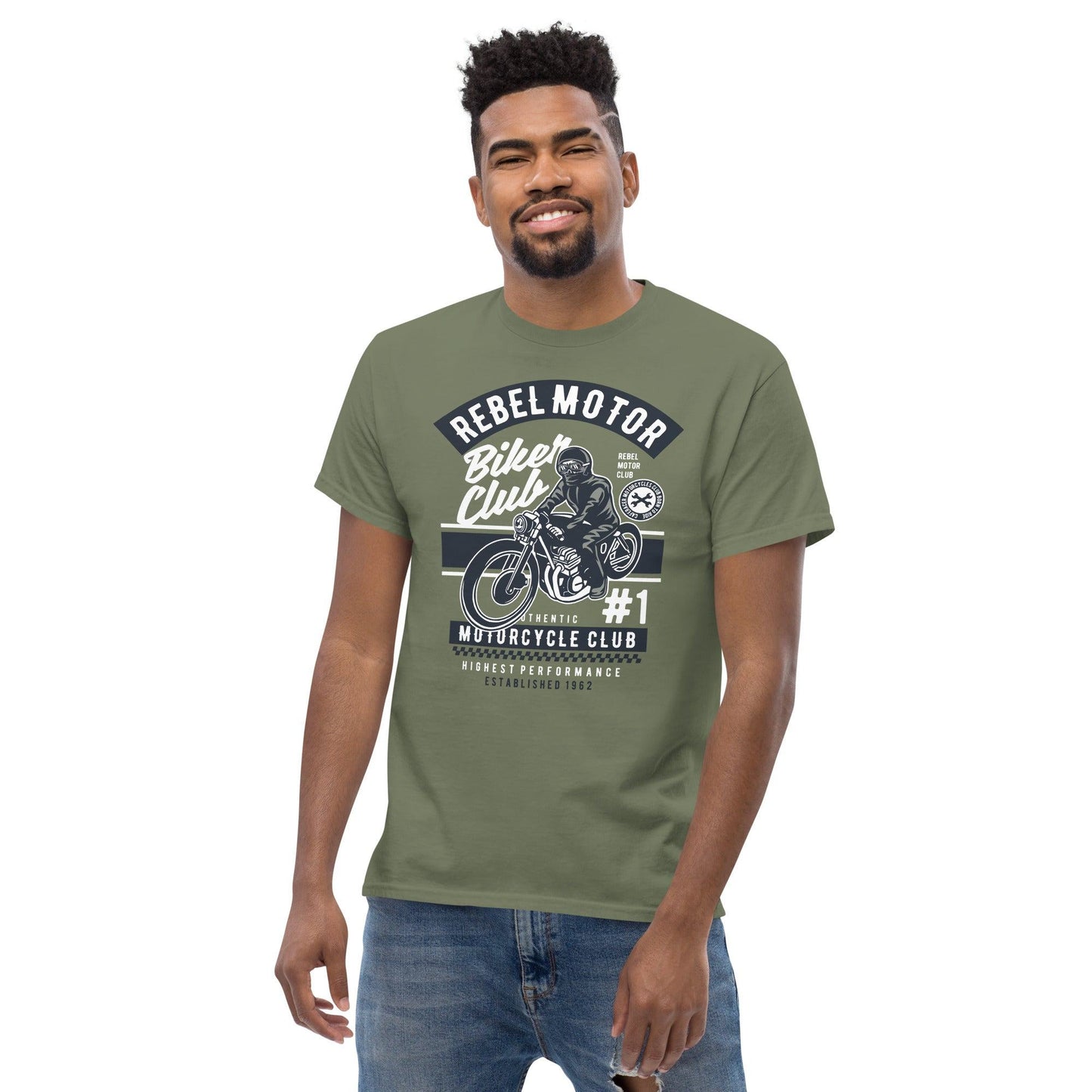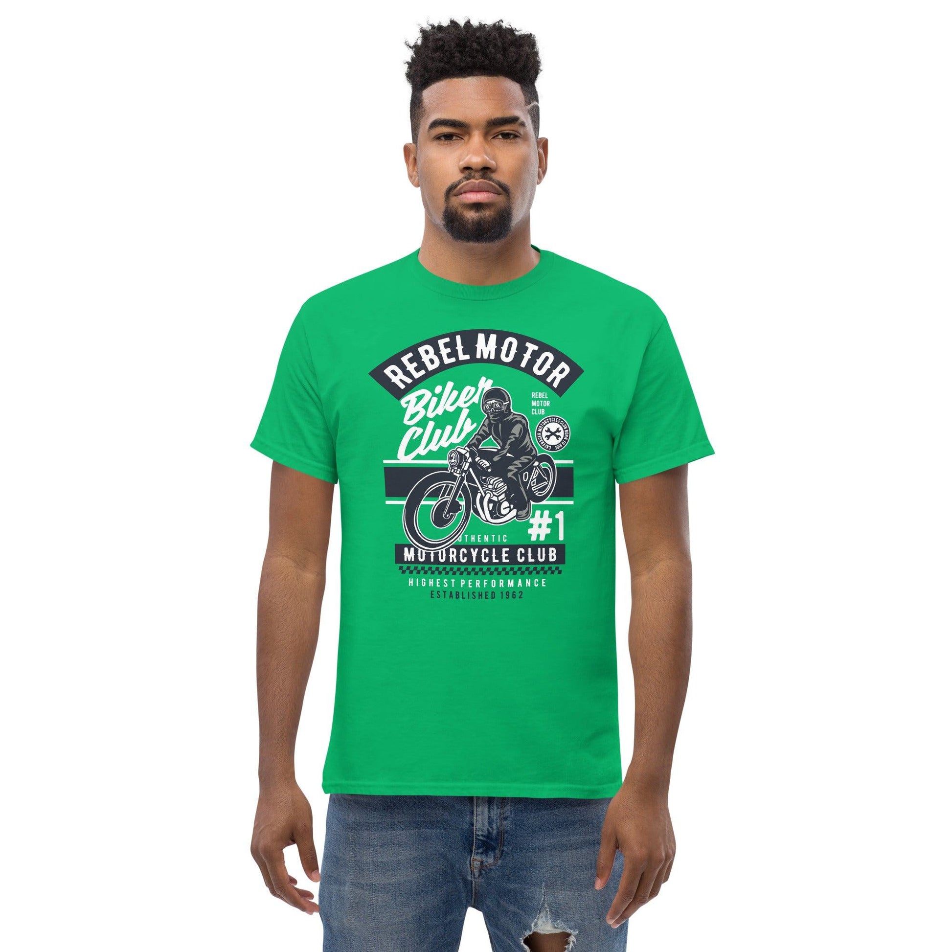 Ein stilvolles Statement für alle, die ihren rebellischen Geist zeigen möchten: Das Rebel Motor Herren-T-Shirt ist ein unverzichtbares Kleidungsstück für jeden Kleiderschrank, um deine Unabhängigkeit und deinen individuellen Stil zu zeigen.