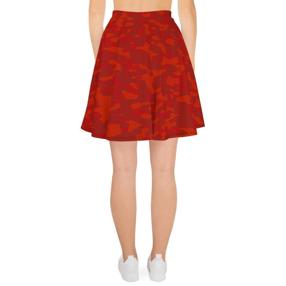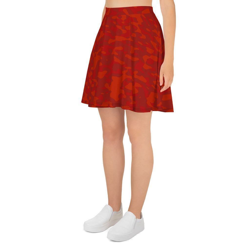 Dieser Red Camouflage Skater Rock ist ein absolutes Must-Have für jeden trendbewussten Kleiderschrank! Mit seinem weichen Stoff und dem elastischen Bund bietet er optimalen Tragekomfort und schmiegt sich perfekt an den Körper an. Der Rock hat eine Länge bis zur Mitte der Oberschenkel und ist mit einem Überdeckstich-Saum versehen, der ihm eine besondere Raffinesse verleiht.