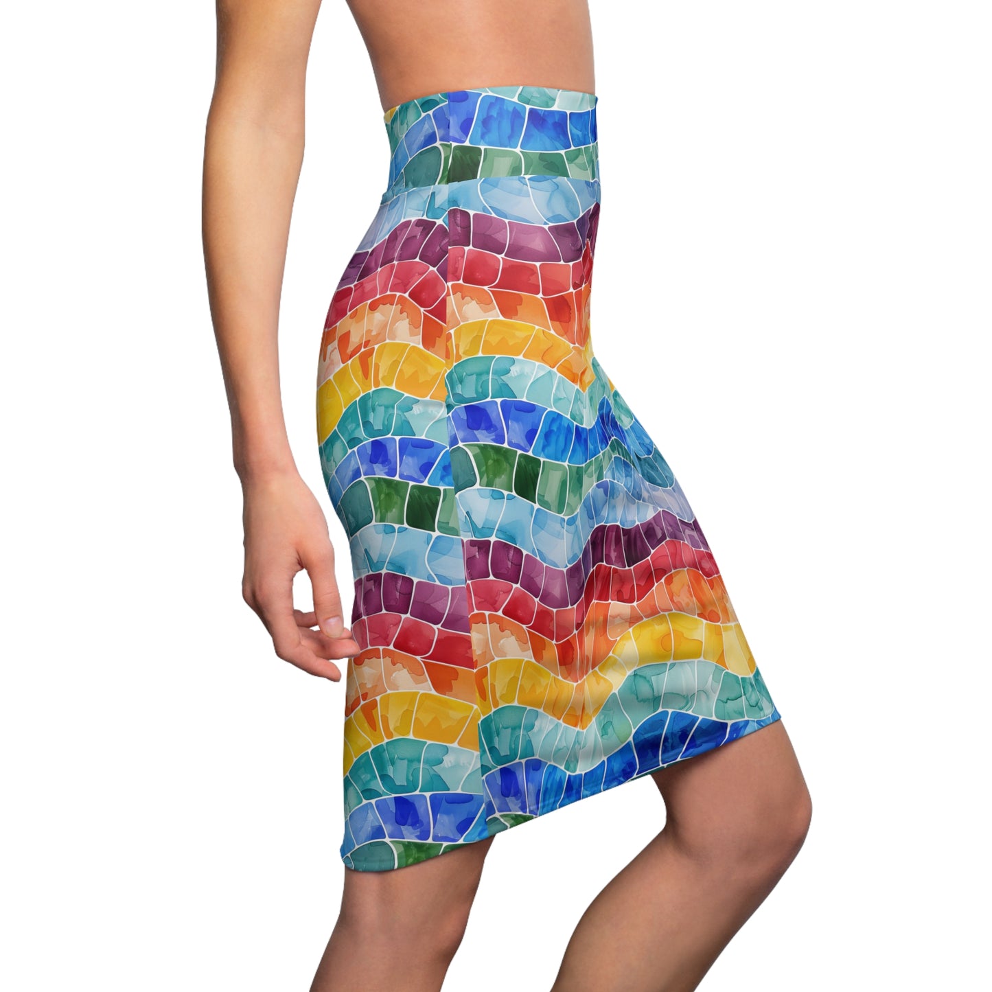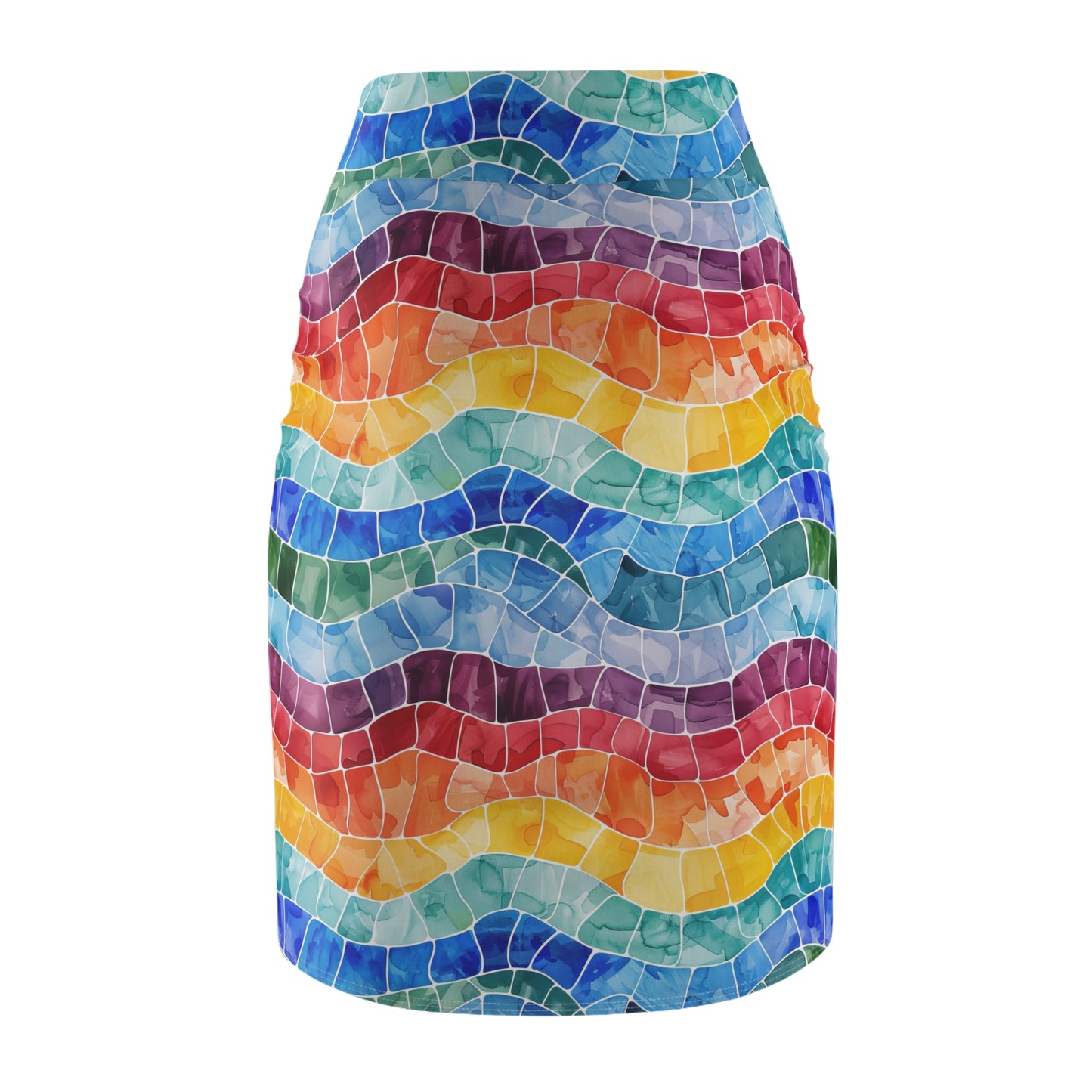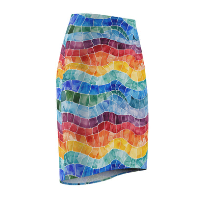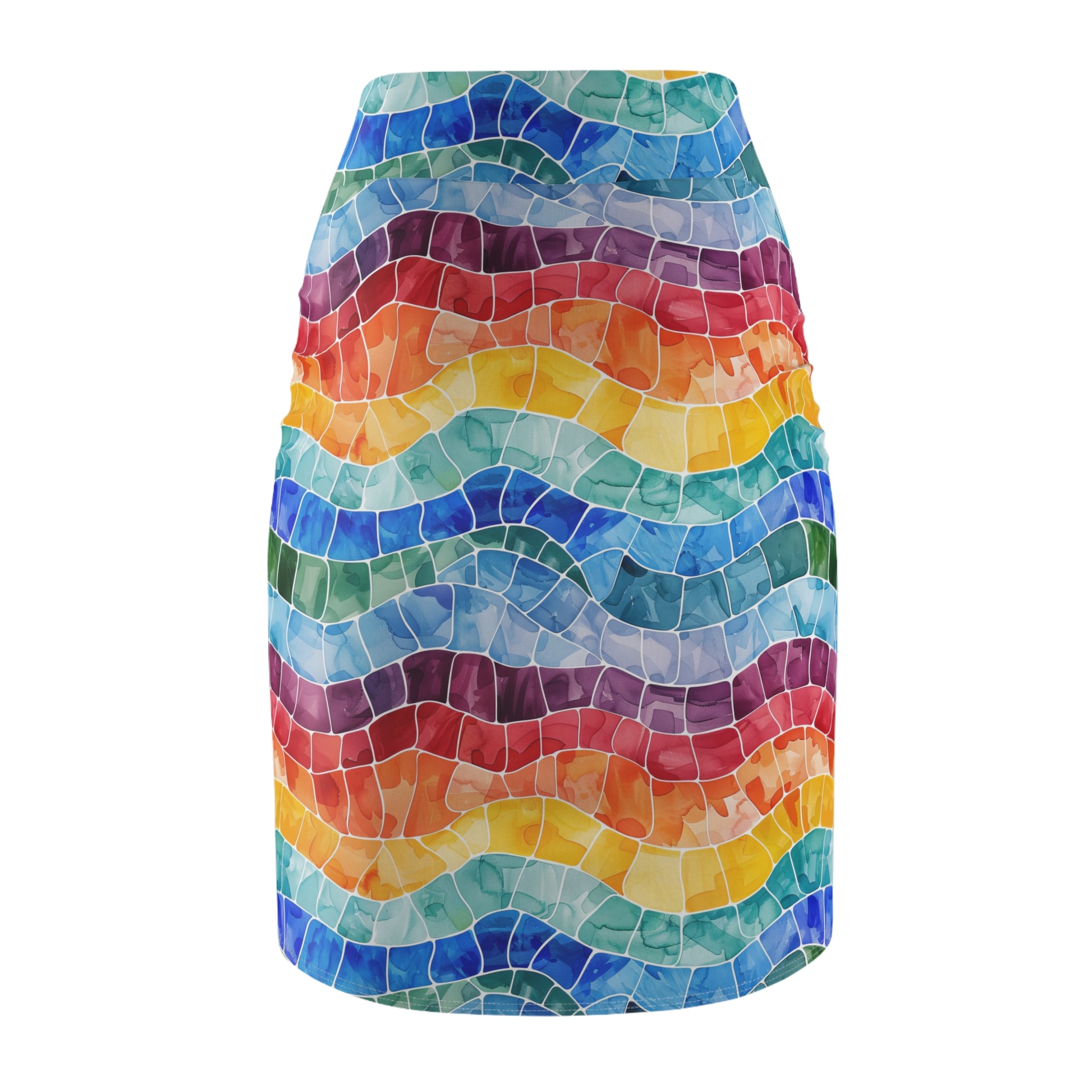Wir präsentieren einen atemberaubenden Regenbogen Mosaik Bleistiftrock, perfekt für alle, die lebendigen Stil und hohen Tragekomfort schätzen.