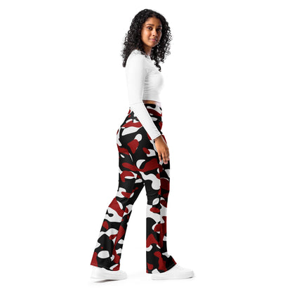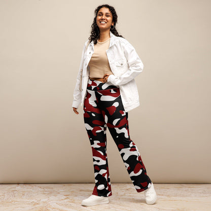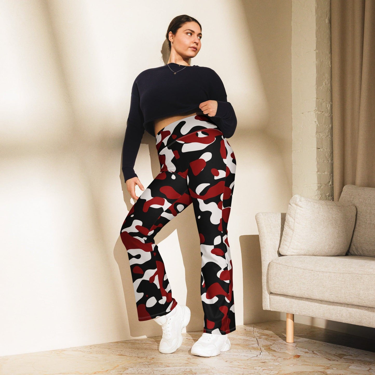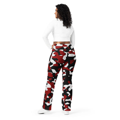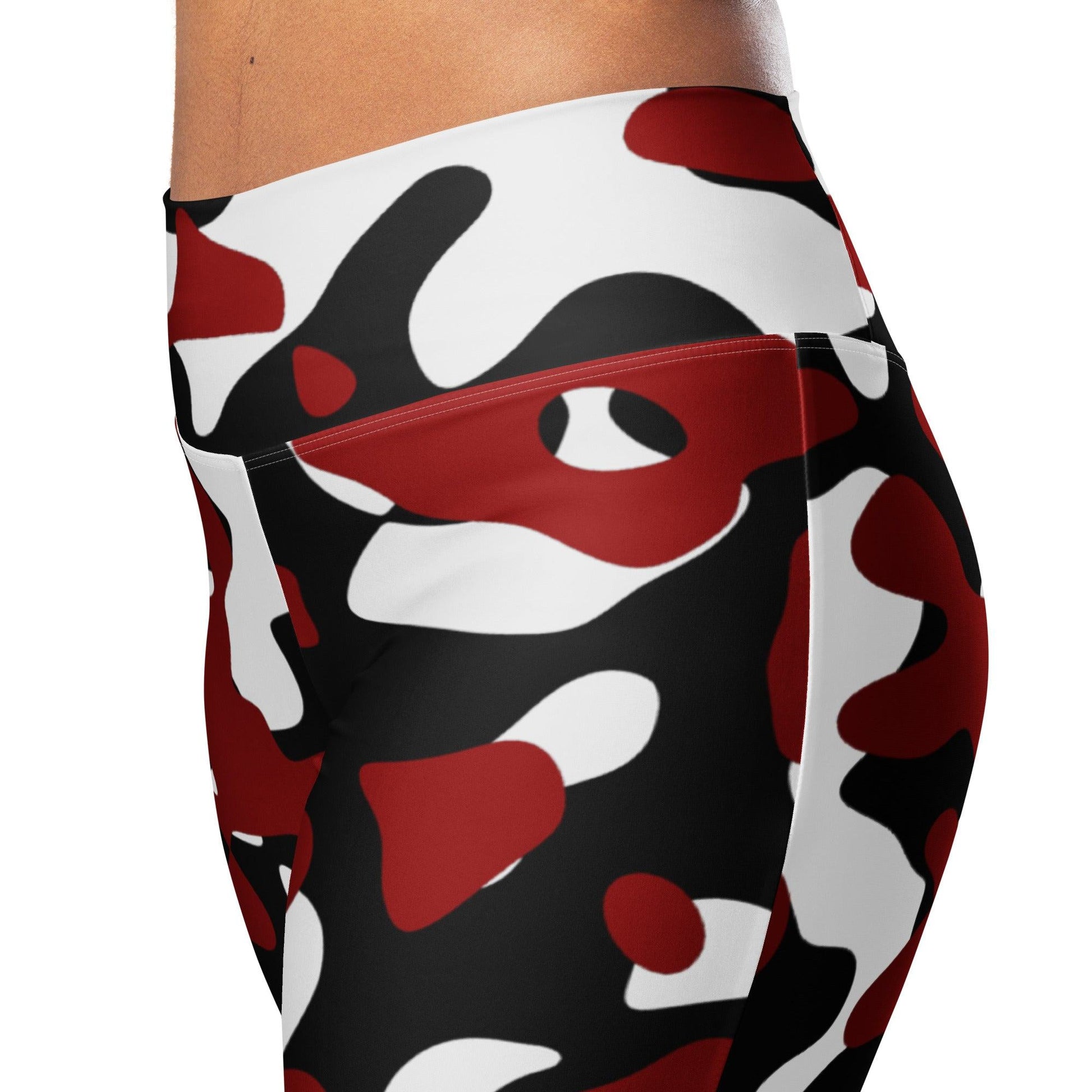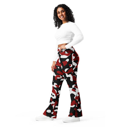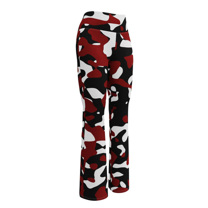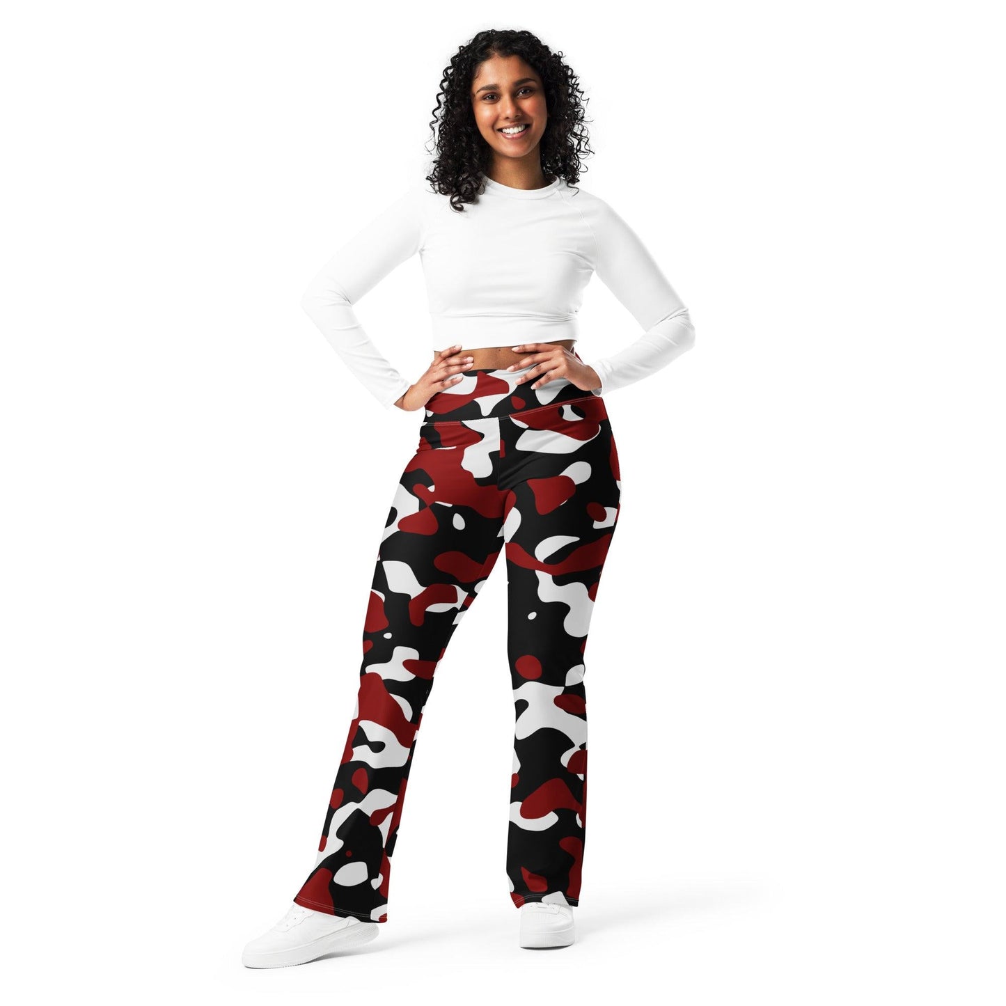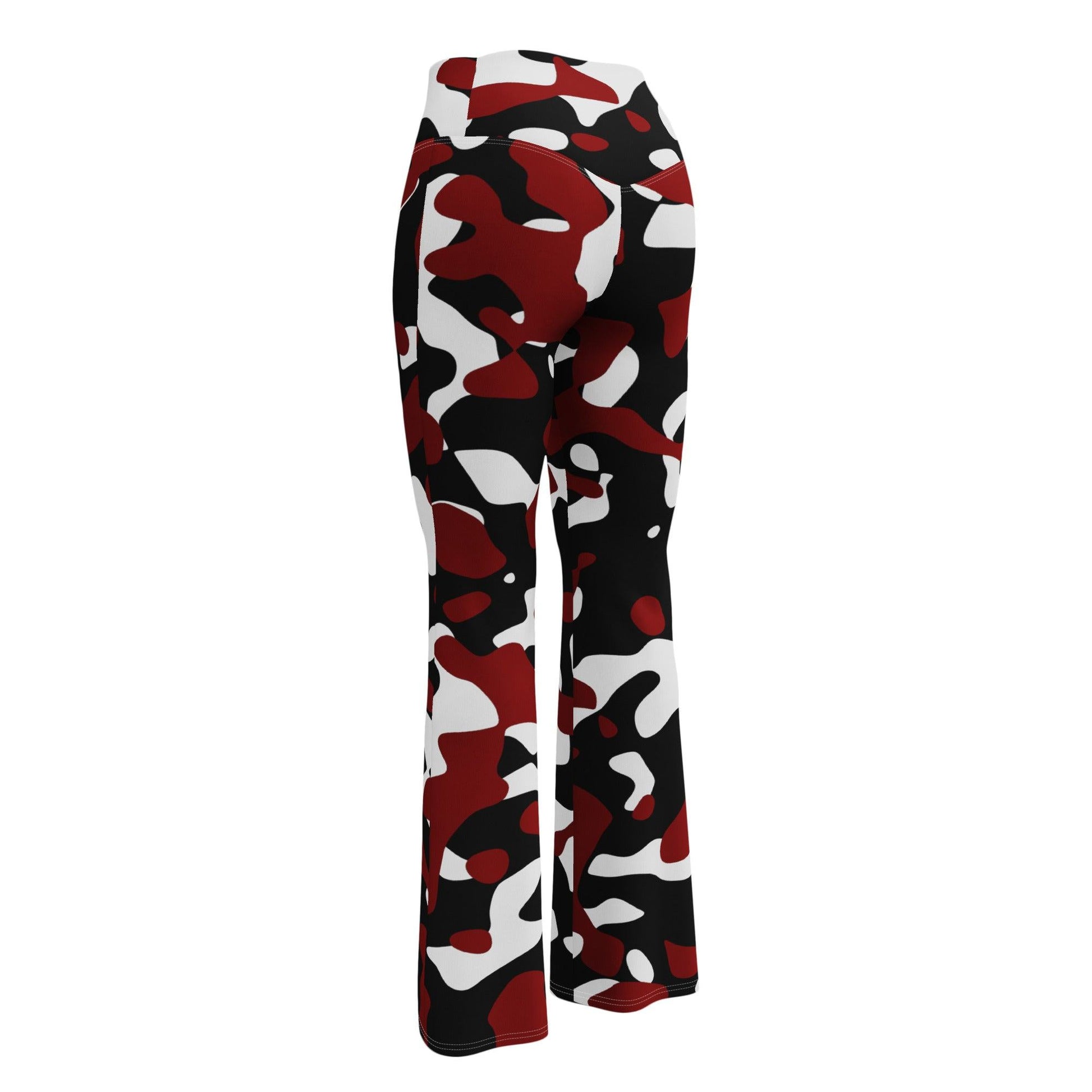 Erlebe Komfort und Stil mit unseren Schwarz Rot Weiß Camouflage High Waist Flare Leggings