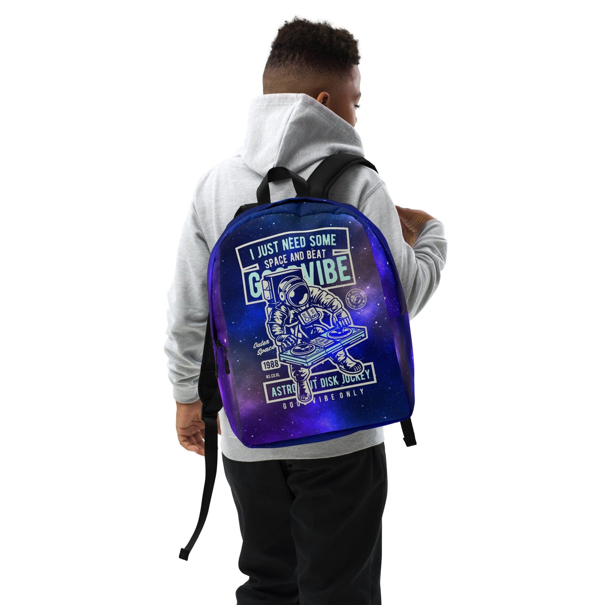 Dieser kleine Rucksack mit Space and Beat Motiv ist ein praktisches Accessoire für unterwegs, das ausreichend Platz für die wichtigsten Dinge bietet.