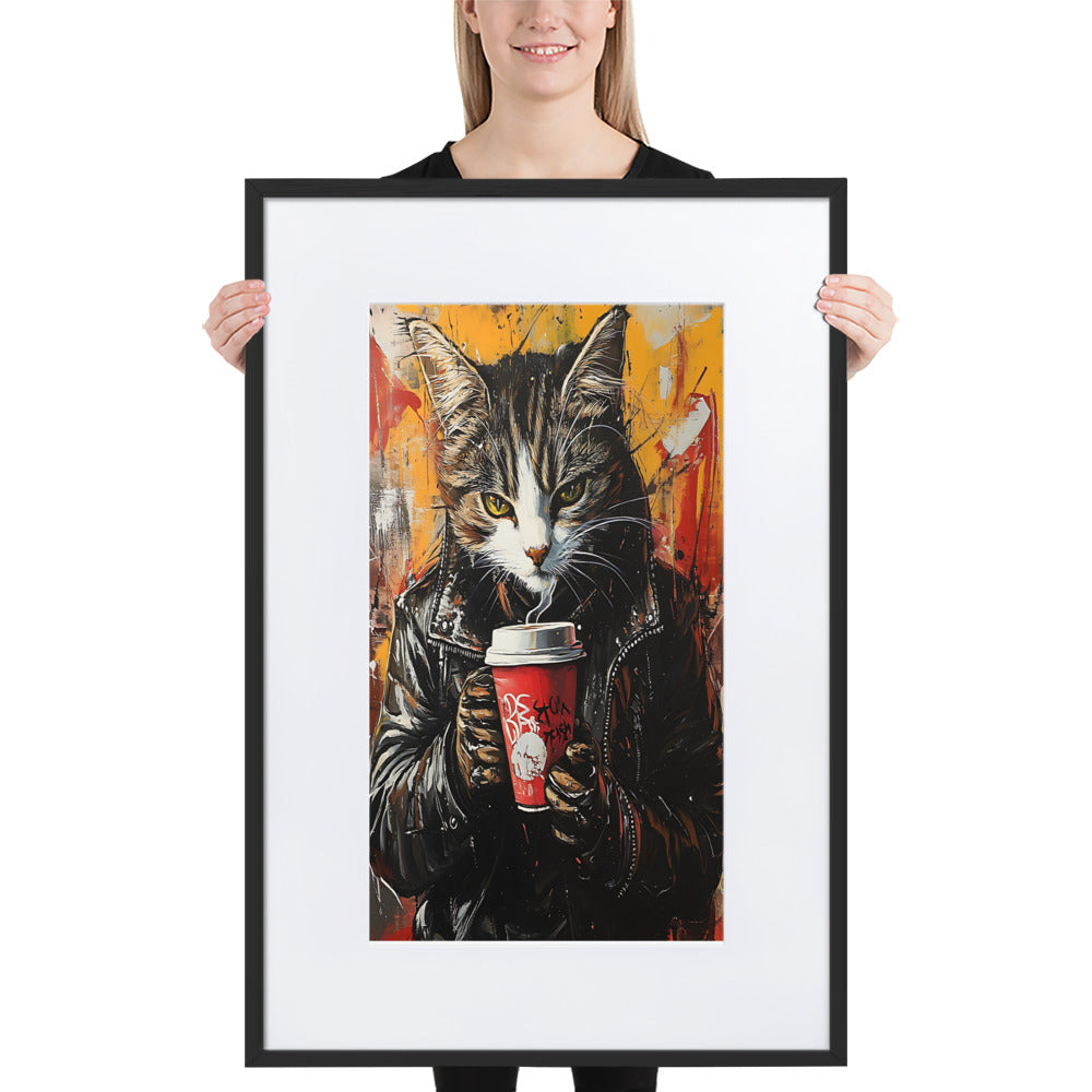 Ein einzigartiger Blickfang für deine Wände: Das Street Art Feline v18 gerahmte Poster!