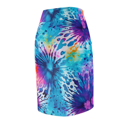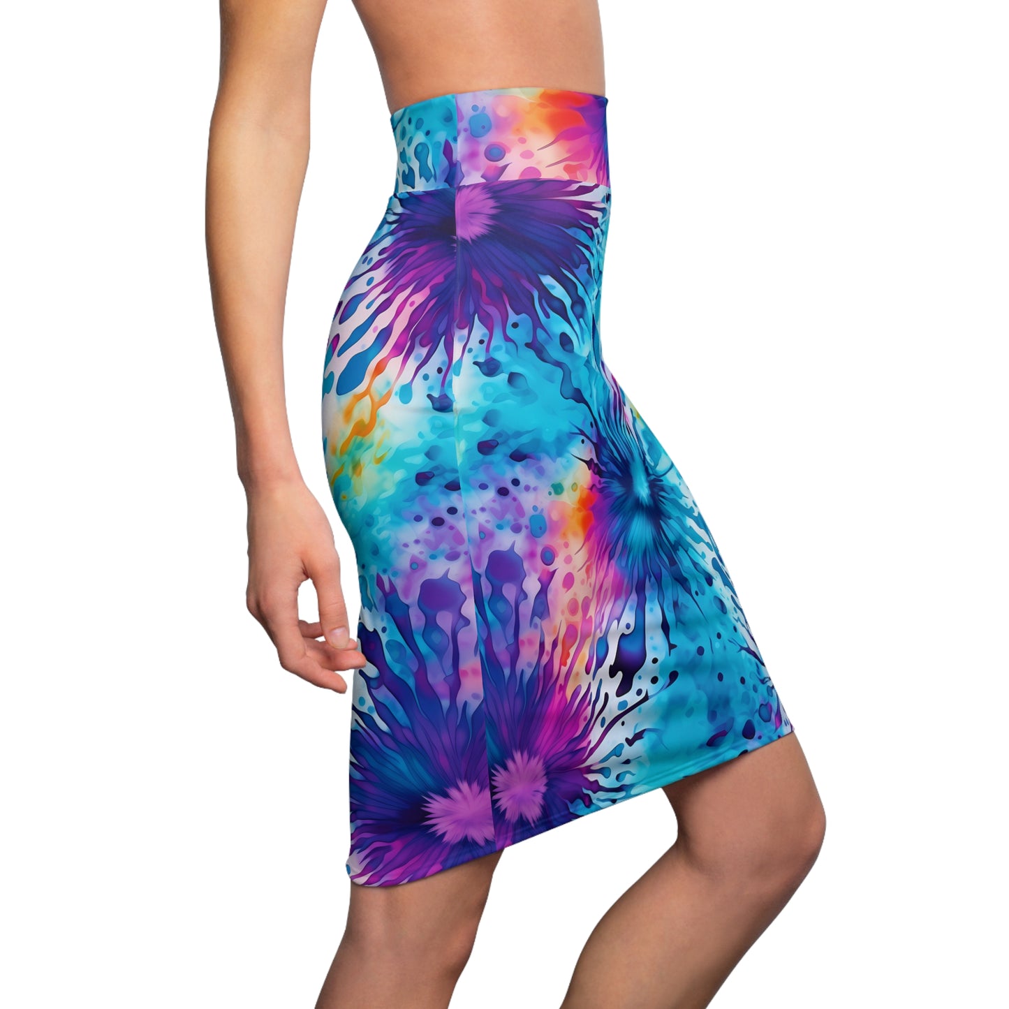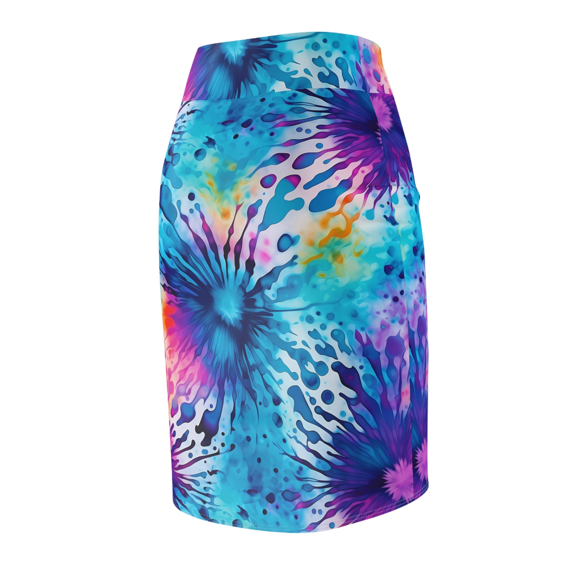 Setz dich stilvoll in Szene mit diesem lebhaften Tie Dye v2 Bleistiftrock, der jedem Outfit einen spielerischen Farbtupfer verleiht!