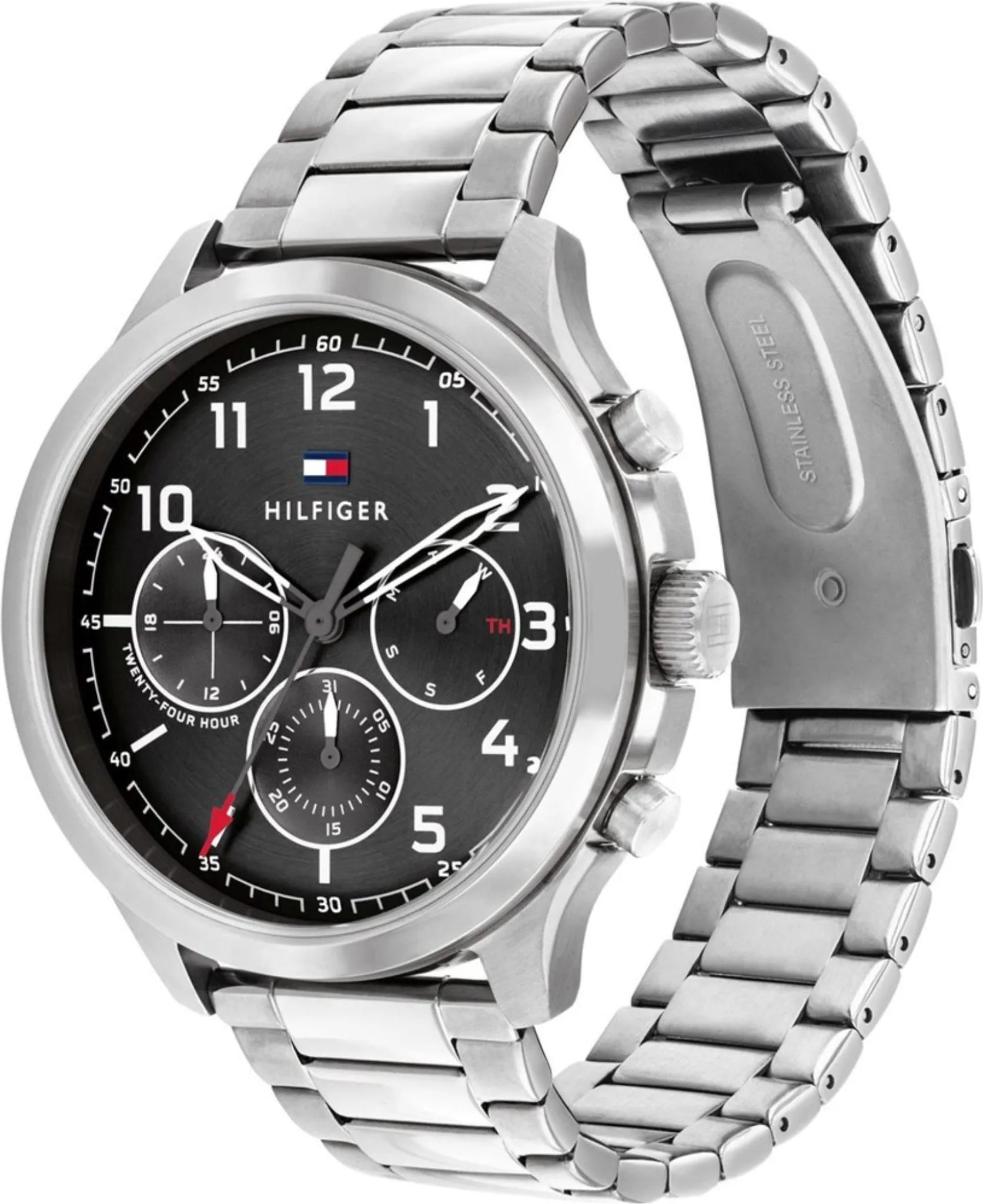 Tommy Hilfiger Asher Herrenuhr 1791852 | Multifunktion | Silbernes Edelstahlgehäuse & Schwarzes Zifferblatt