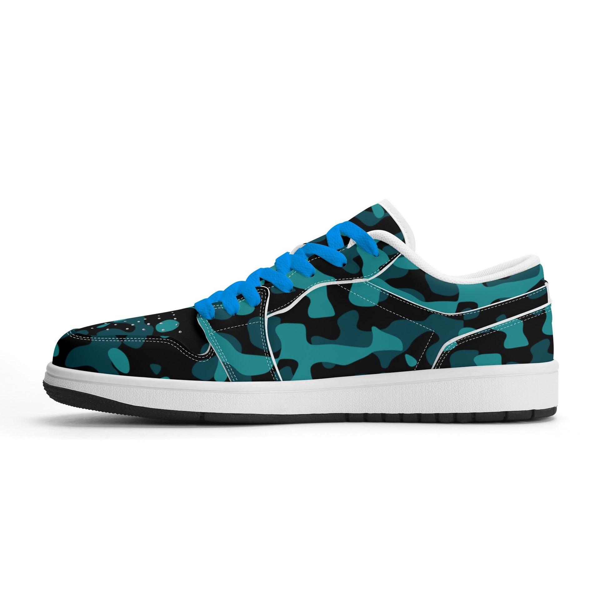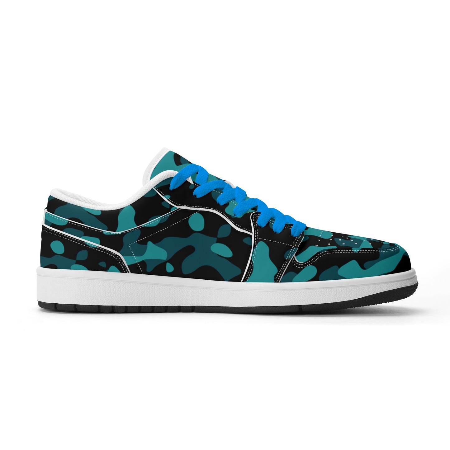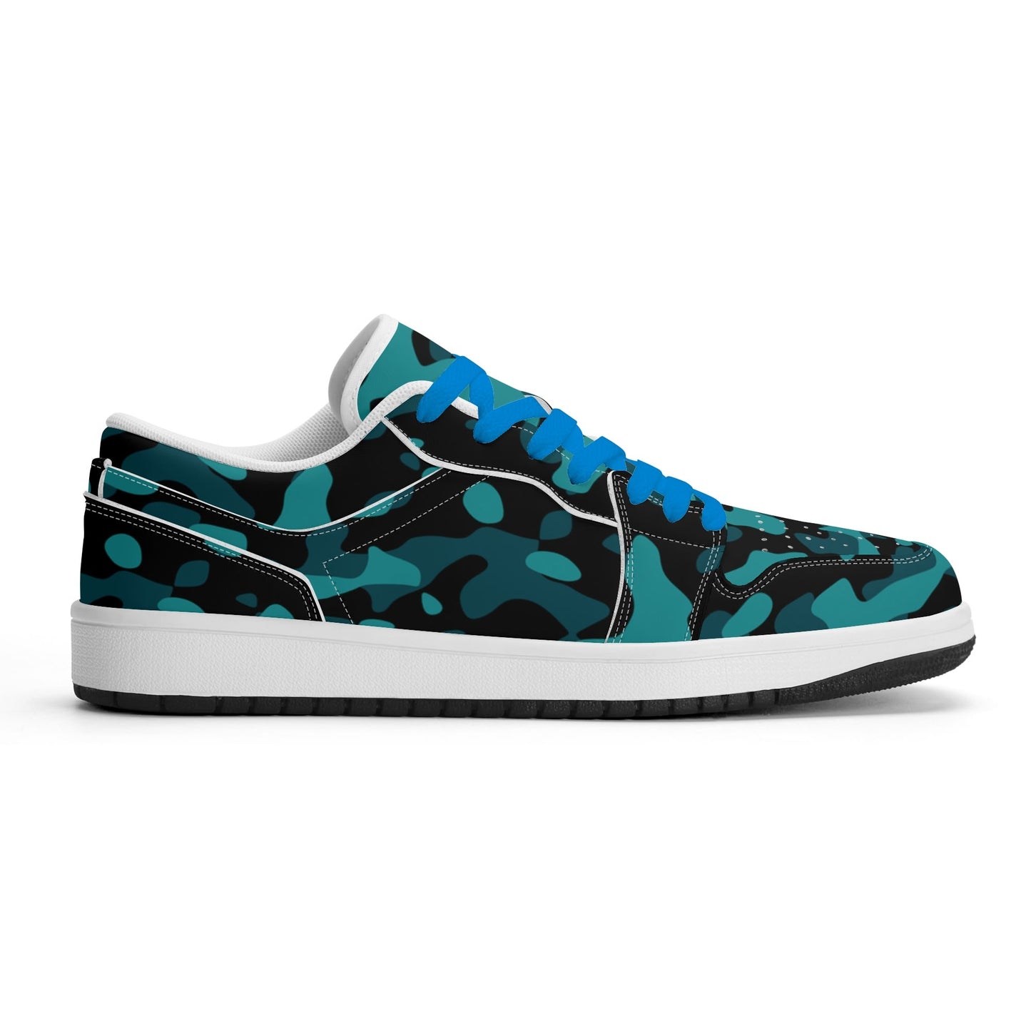 Setze ein modisches Statement mit Camouflage! Hol dir jetzt deine neuen türkisen Camouflage Low Top Leder Sneaker!