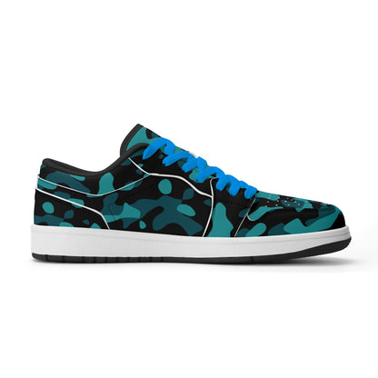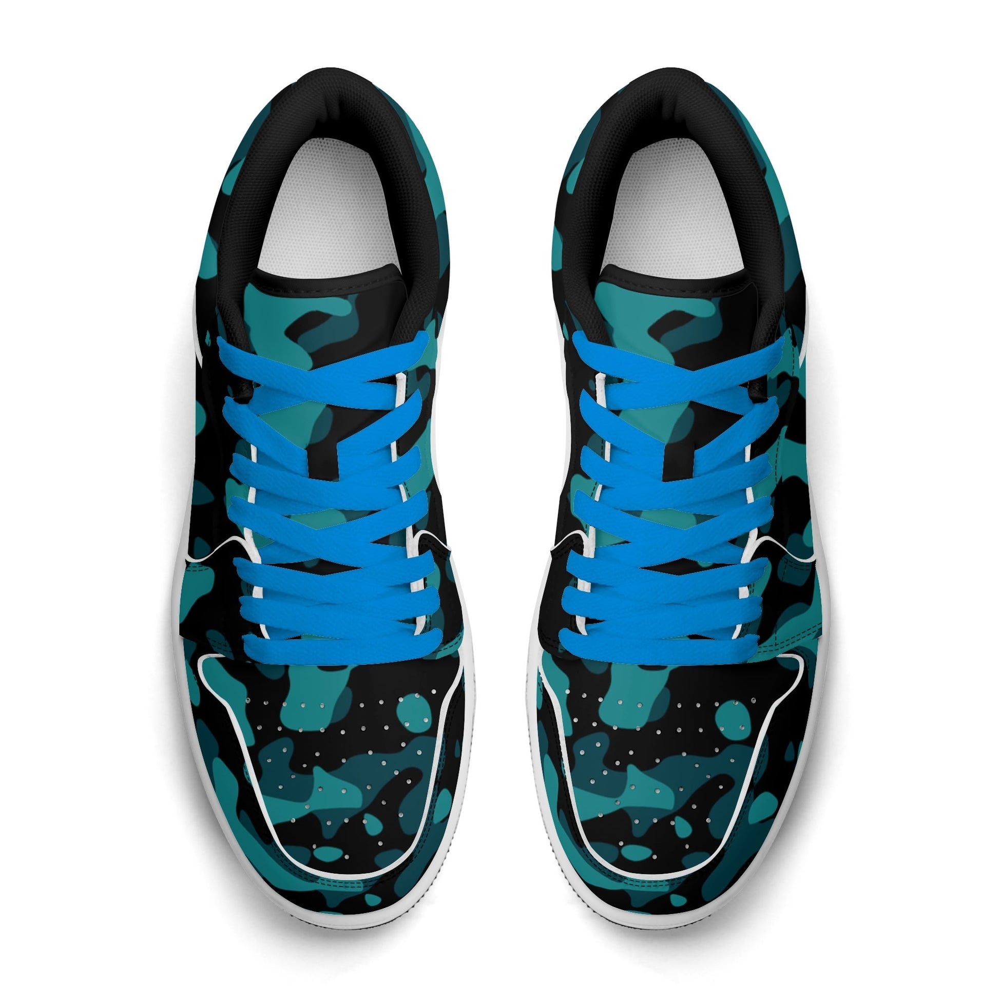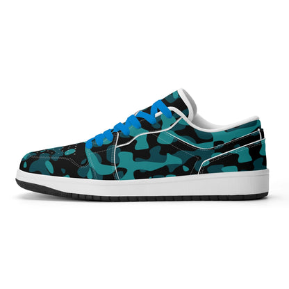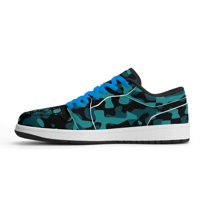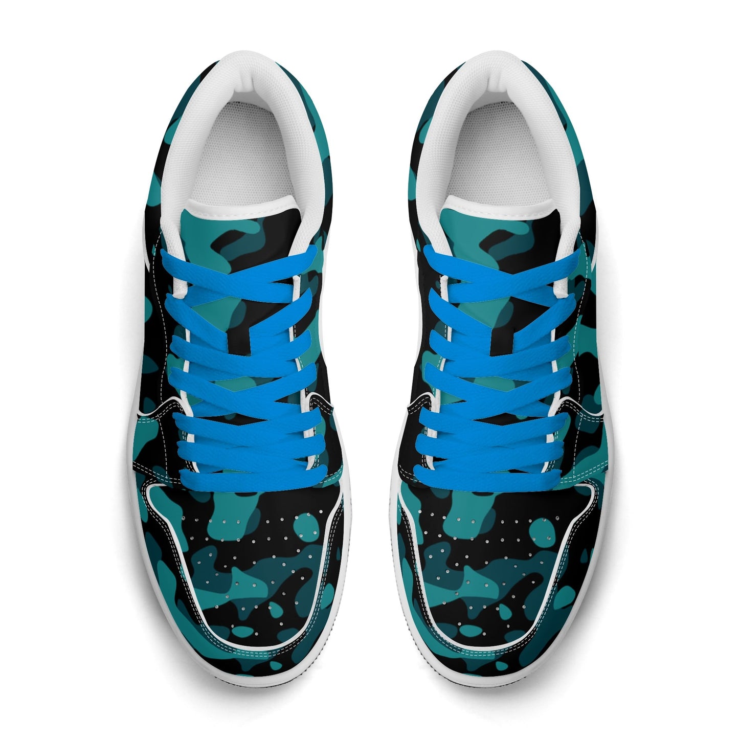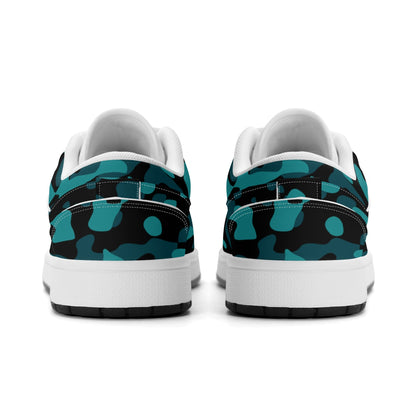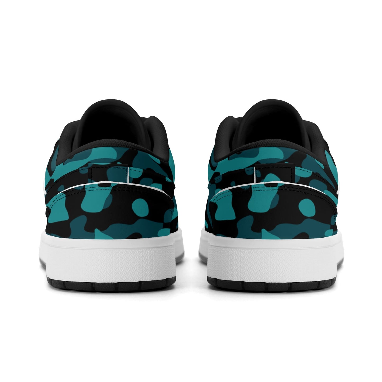 Setze ein modisches Statement mit Camouflage! Hol dir jetzt deine neuen türkisen Camouflage Low Top Leder Sneaker!