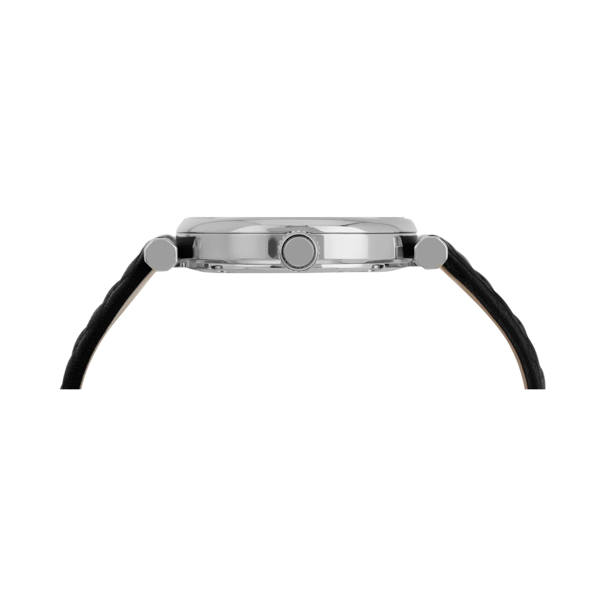 Das hochwertige schwarze Lederarmband sorgt für eine klassische Note und macht diese Uhr zum vielseitigsten Begleiter Ihrer Kollektion.